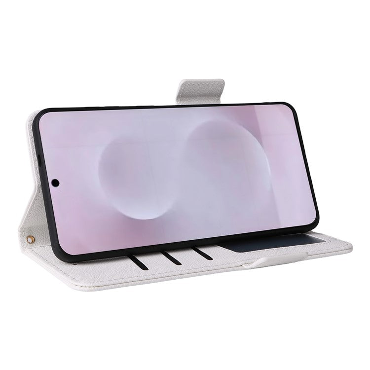 For Samsung Galaxy S25 Edge Case Wallet Flip Litchi Texture PU Leather Phone Cover - White