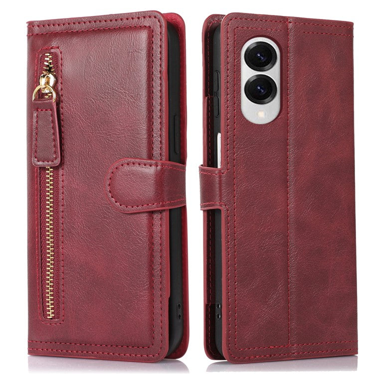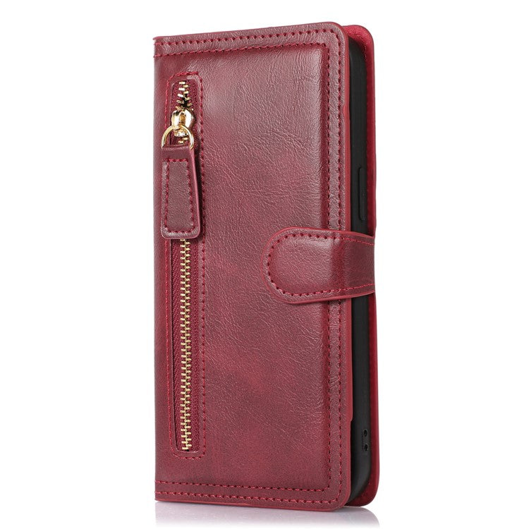For Samsung Galaxy S25 Edge Case Zipper Flip Leather Phone Cover with Card Holder - Red