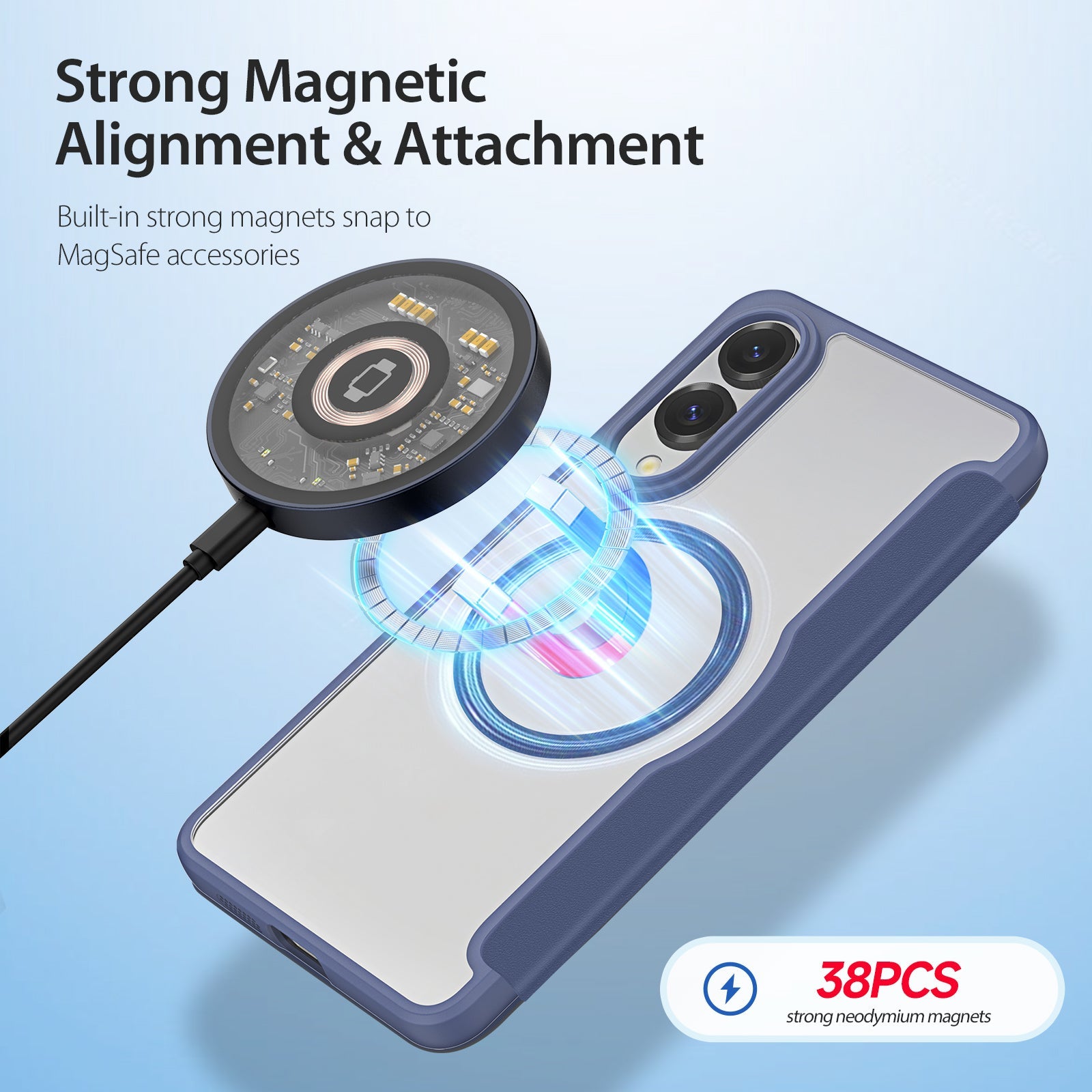 For Samsung Galaxy S25 Edge Leather Case DUX DUCIS Skin X Pro Series Stand Cover Compatible with MagSafe - Blue