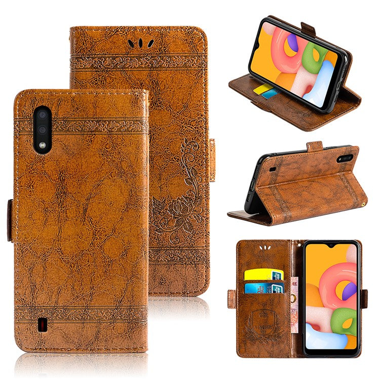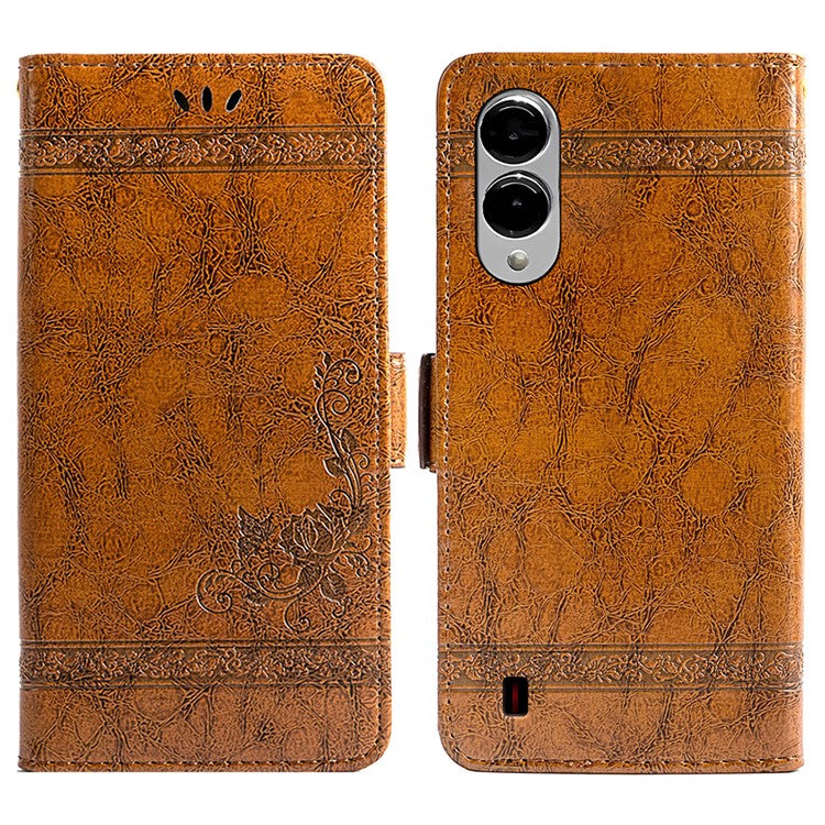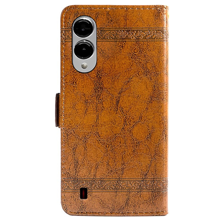 For Samsung Galaxy S25 Edge Leather Case Flower Imprint Wallet Phone Cover with Side Buckle - Brown