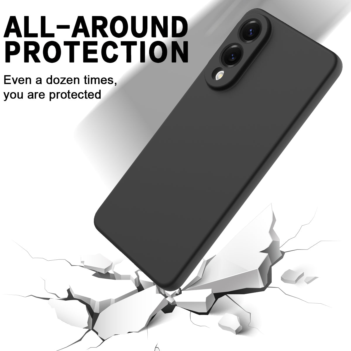 For Samsung Galaxy S25 Edge Liquid Silicone Case Phone Back Cover with Hand Strap - Black