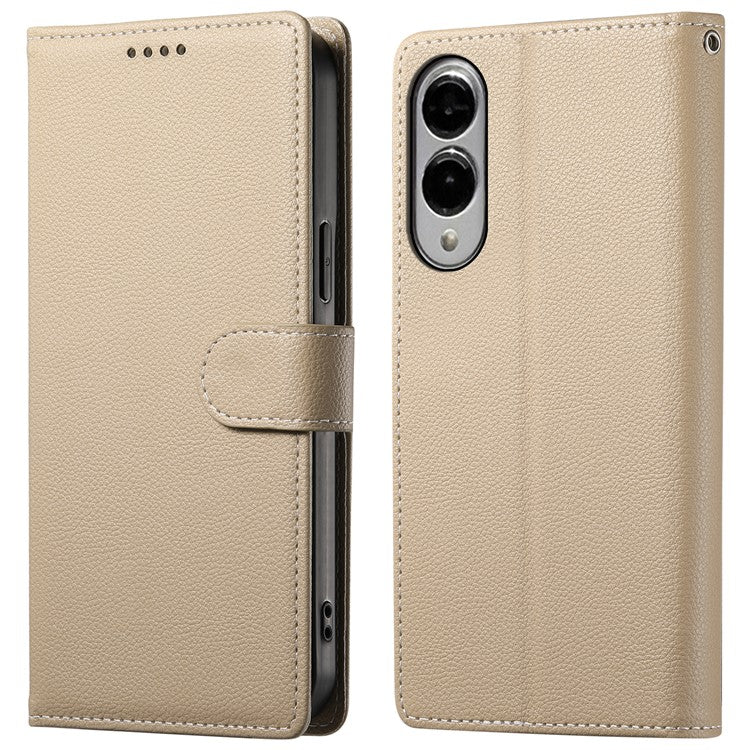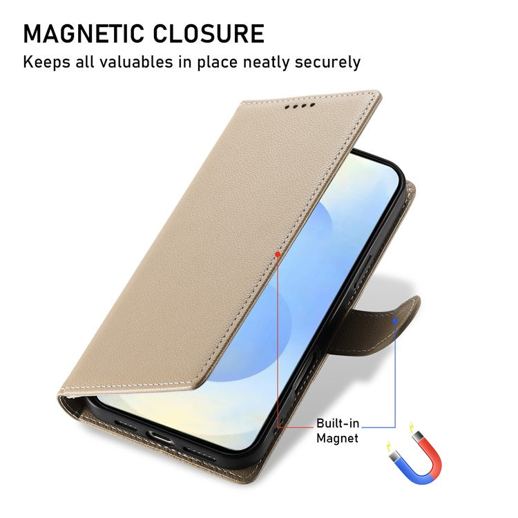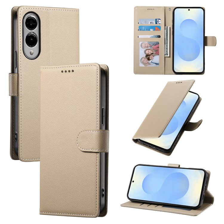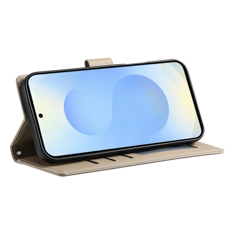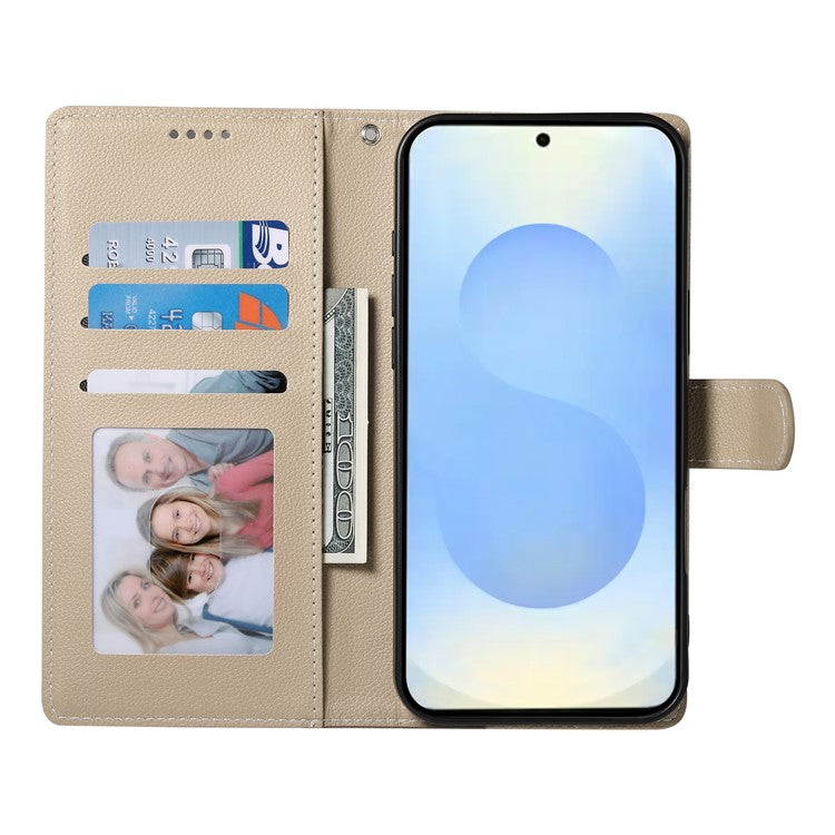 For Samsung Galaxy S25 Edge Stand Case Litchi Texture Leather Wallet Phone Cover Magnetic Snap - Apricot