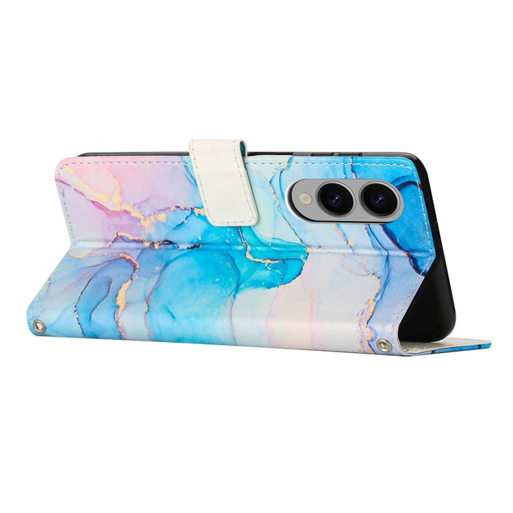 For Samsung Galaxy S25 Edge Stand Case Marble Pattern PU Leather Wallet Phone Cover - Pink / Green