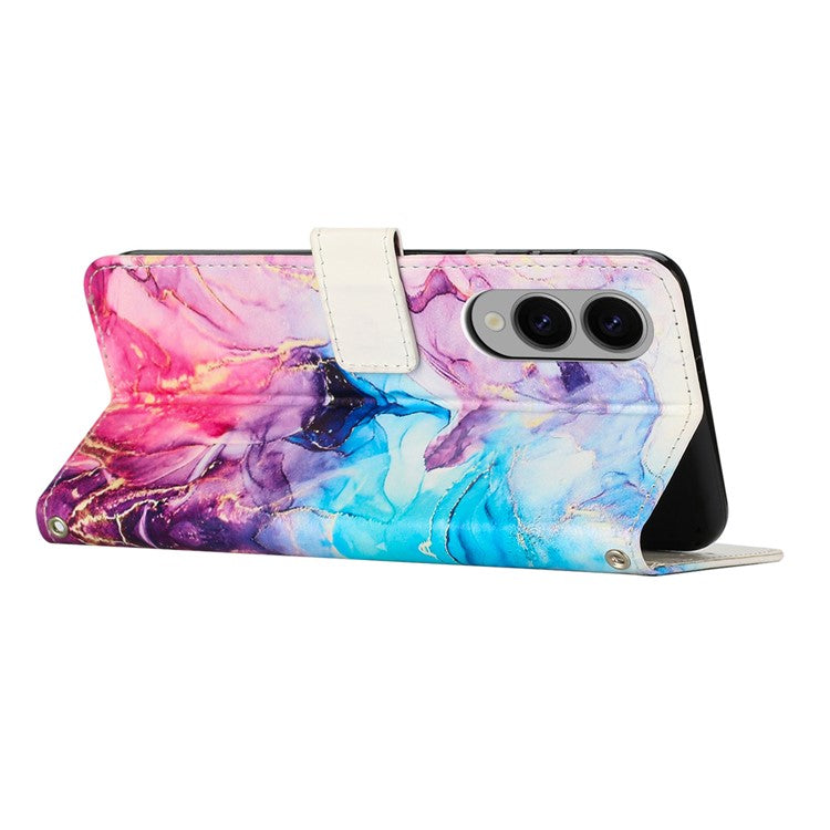 For Samsung Galaxy S25 Edge Stand Case Marble Pattern PU Leather Wallet Phone Cover - Pink / Purple