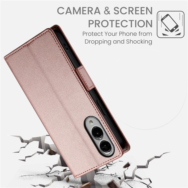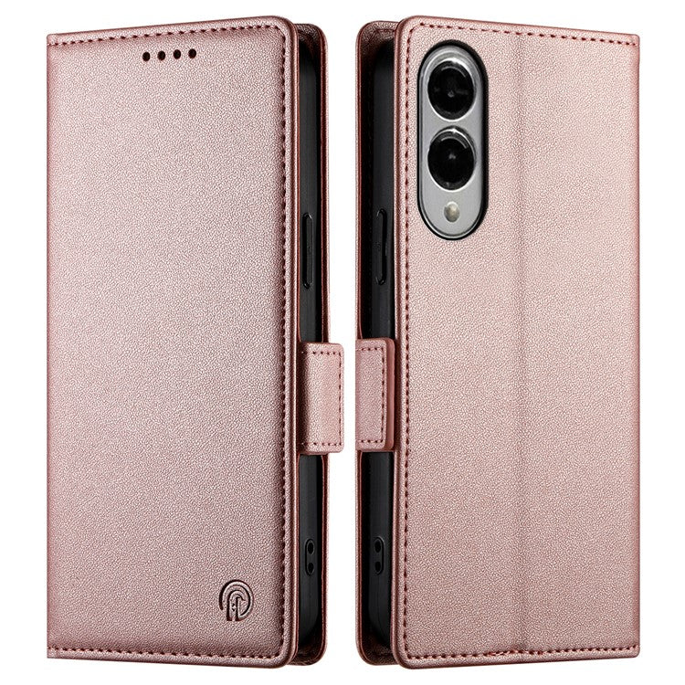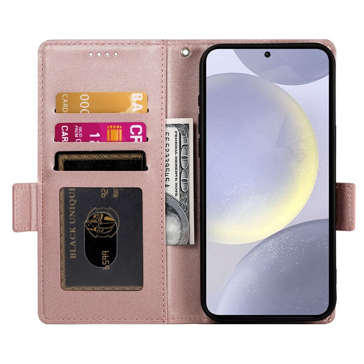 For Samsung Galaxy S25 Edge Stand Case PU Leather Wallet Phone Cover - Rose Gold