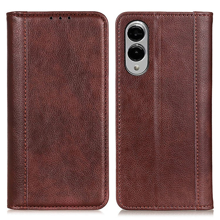For Samsung Galaxy S25 Edge Stand Case Split Leather Litchi Texture Wallet Phone Cover - Brown