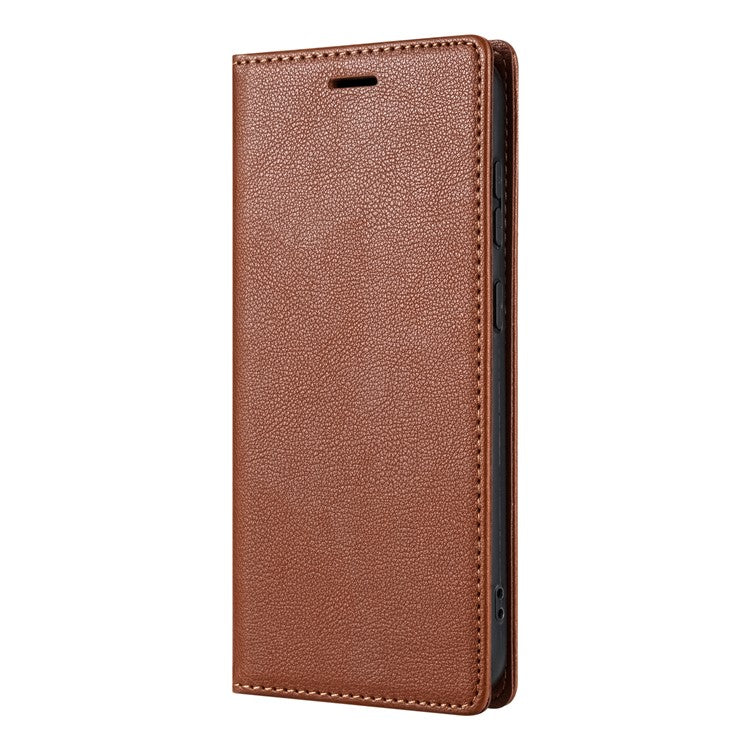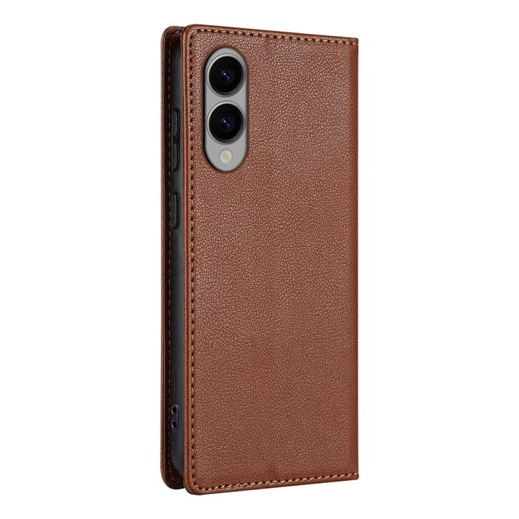 For Samsung Galaxy S25 Edge Wallet Case Magnetic Closure PU Leather Phone Cover - Brown