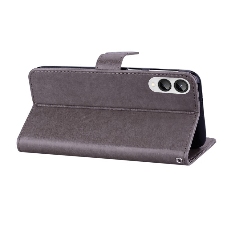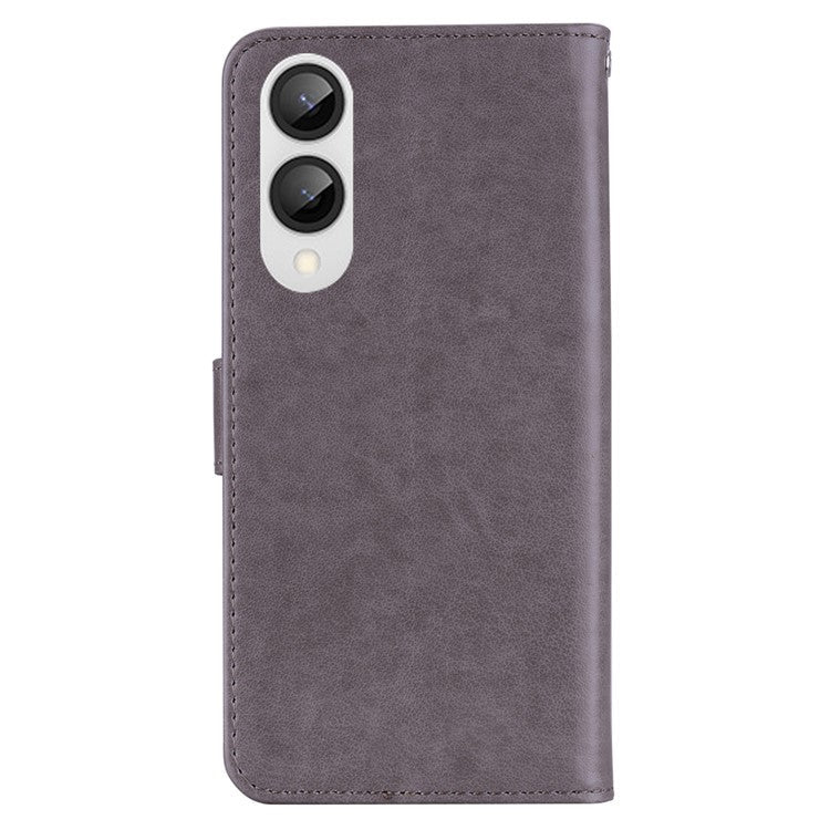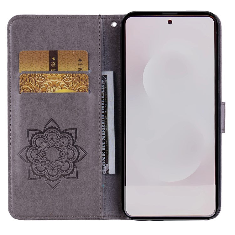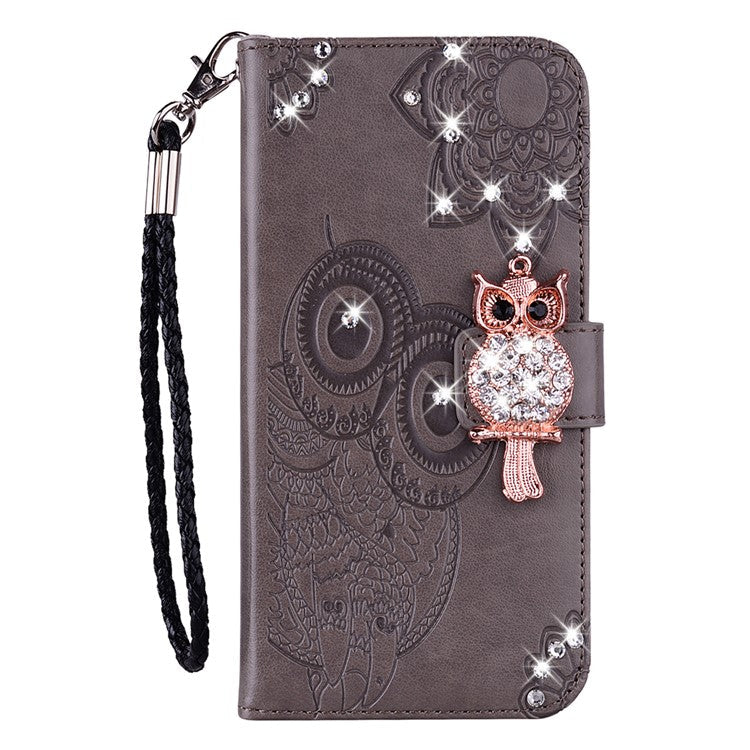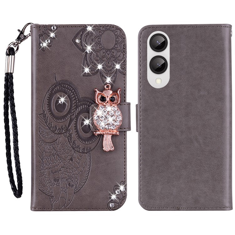 For Samsung Galaxy S25 Edge Wallet Case Owl Flower Imprinted Rhinestone Leather Cover - Grey