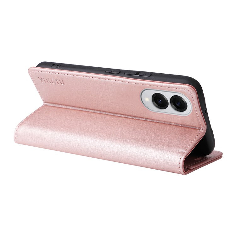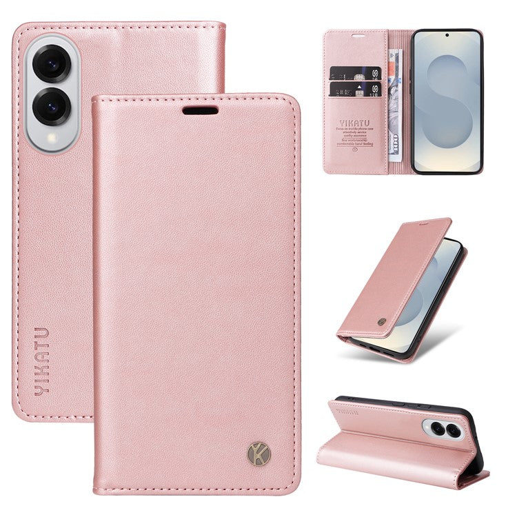 For Samsung Galaxy S25 Edge Wallet Case YIKATU YK- 001 PU Leather Phone Cover with Stand - Rose Gold