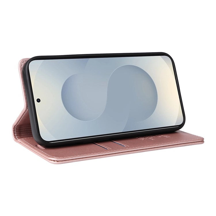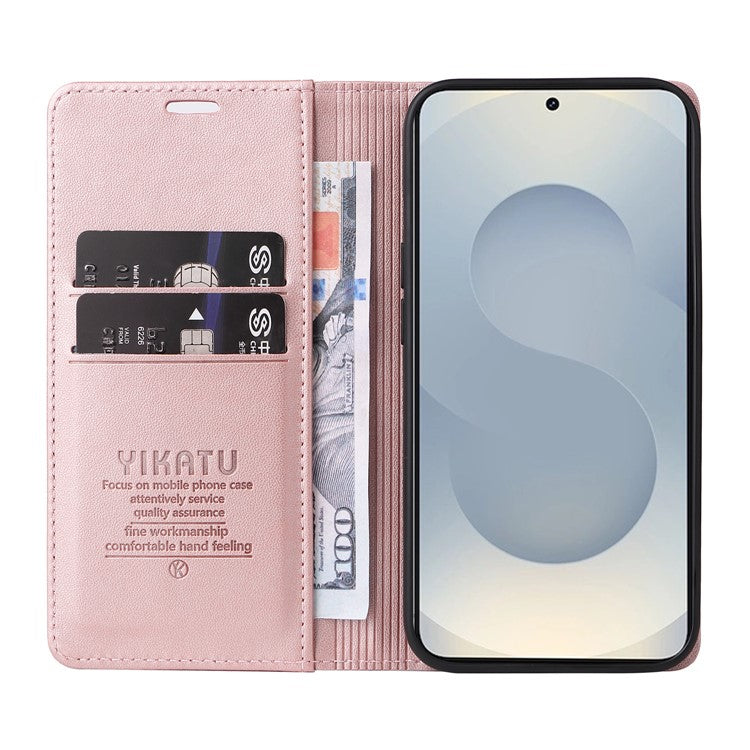 For Samsung Galaxy S25 Edge Wallet Case YIKATU YK- 001 PU Leather Phone Cover with Stand -  Rose Gold
