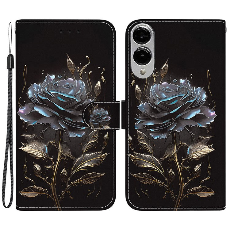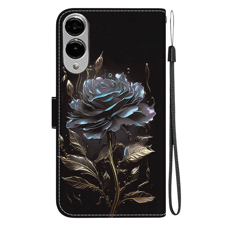 For Samsung Galaxy S25 Edge Wallet Phone Case Anti-Drop Leather Flip Cover Pattern Printing - Black Rose