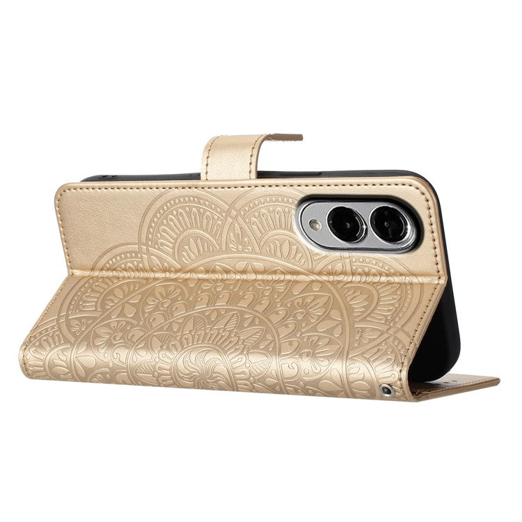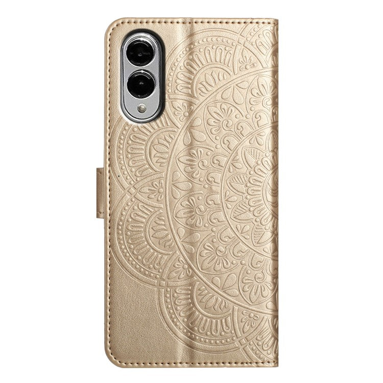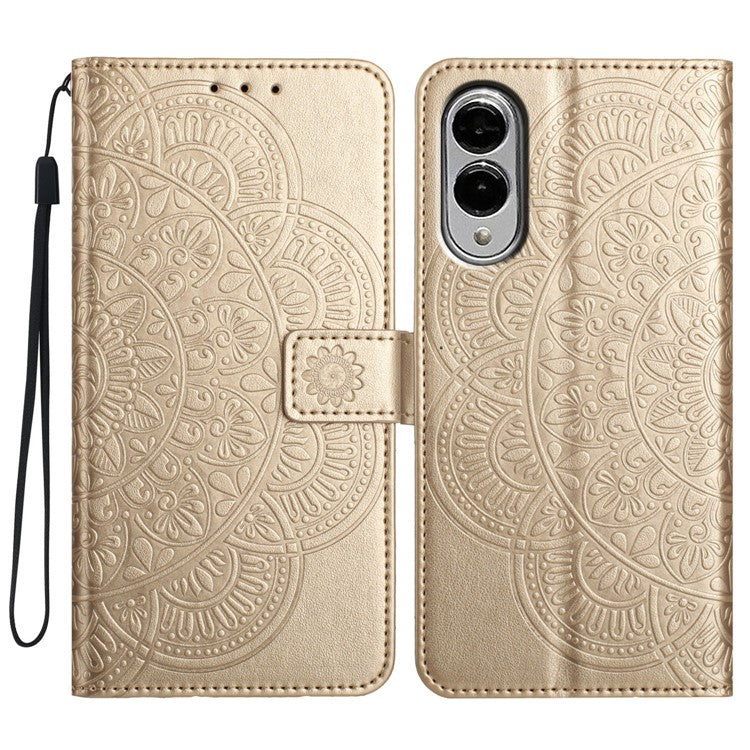 For Samsung Galaxy S25 Edge Wallet Phone Case Butterfly Floral Imprint Leather Flip Cover with Strap - Gold