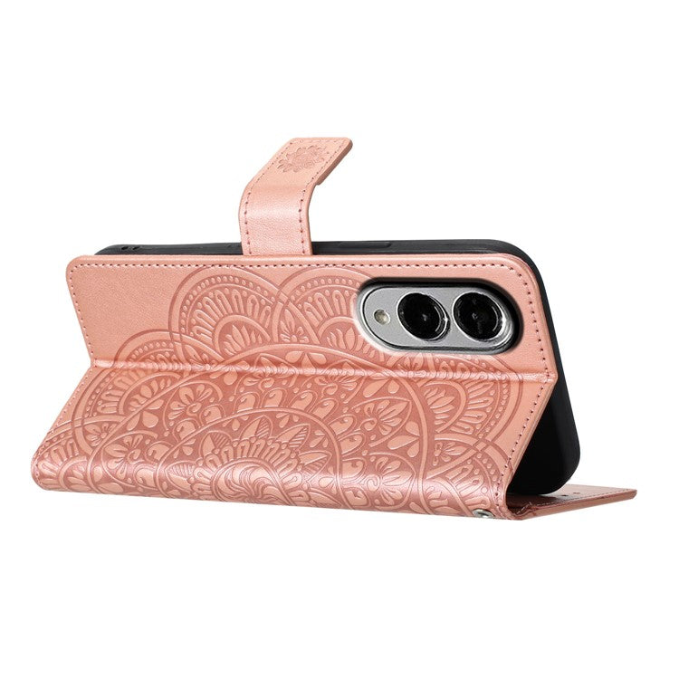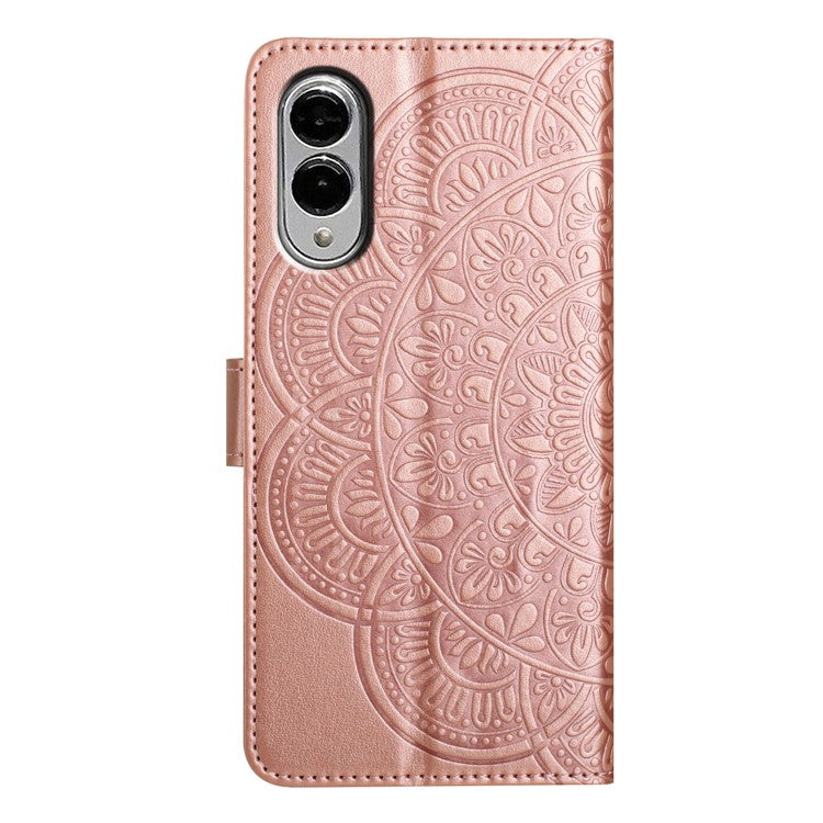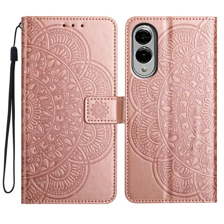 For Samsung Galaxy S25 Edge Wallet Phone Case Butterfly Floral Imprint Leather Flip Cover with Strap - Rose Gold
