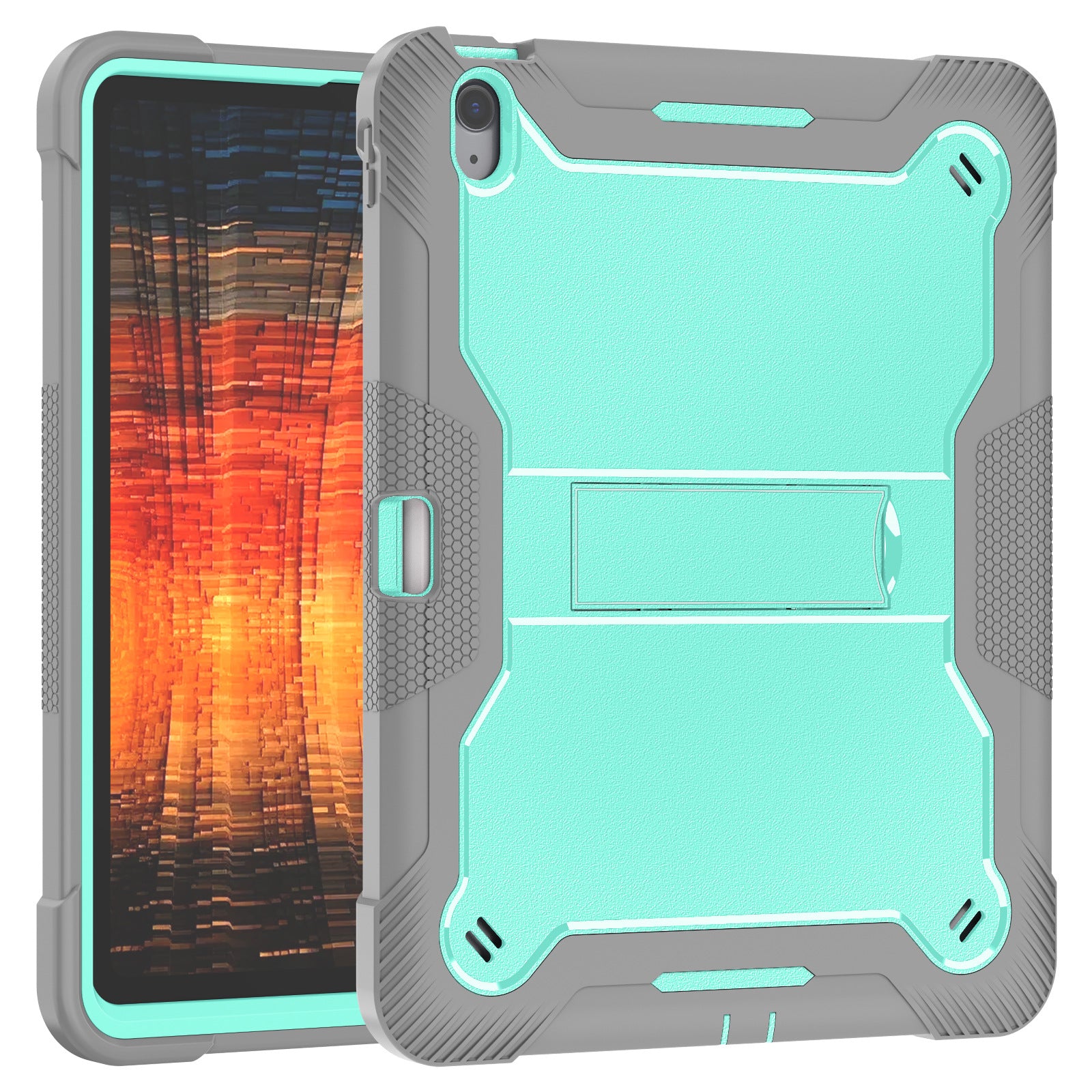 Bulk Buy Tablet Case For Samsung Galaxy Tab S9 FE / Tab S9 X710 / X716B / X718U Kickstand Silicone + PC Impact Protective Tablet Cover - Mint Green+Grey