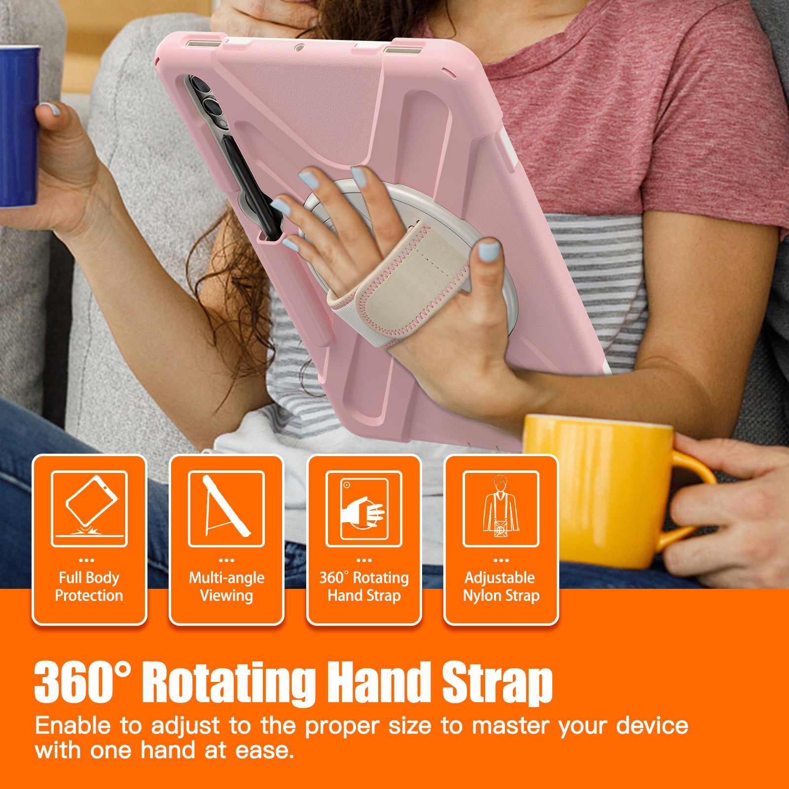 Case for Samsung Galaxy Tab S9 FE+ / S9+ / S8+ / S7+ / S7 FE T730 T735 T736B T736N Tablet Cover with Shoulder Strap - Pink