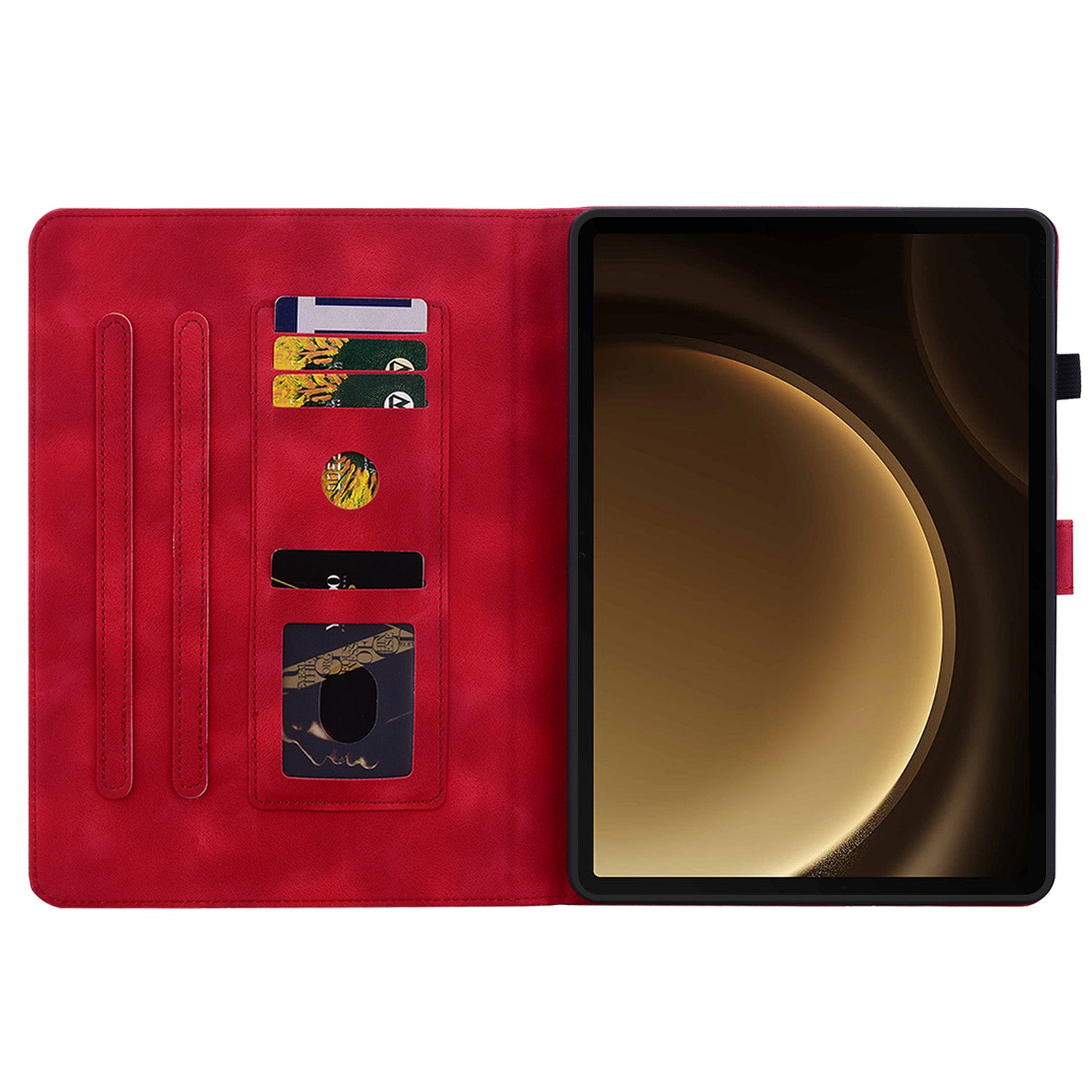 For Samsung Galaxy Tab S10+ / S9+ / S9 FE+ Card Slots Case Lily Flower Imprint PU Leather Tablet Cover - Red