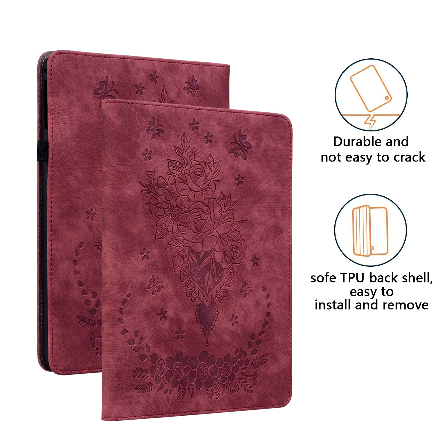 For Samsung Galaxy Tab S10 / S9 / S9 FE Stand Folio Case PU Leather Imprinted Cards Holder Tablet Cover - Red
