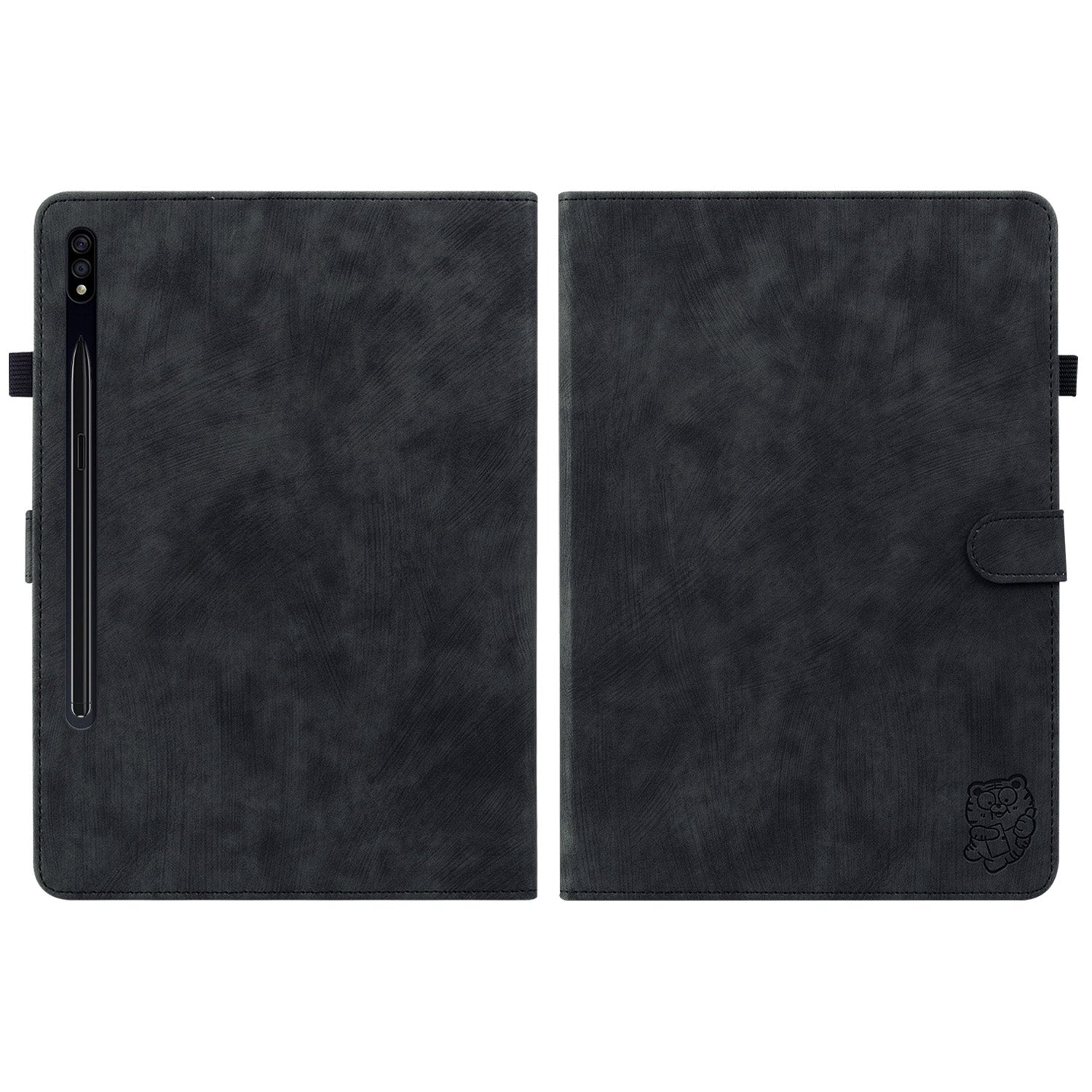 For Samsung Galaxy Tab S10 / S9 / S9 FE Stand Folio Tablet Case PU Leather Cute Tiger Pattern Cover with Card Holder - Black