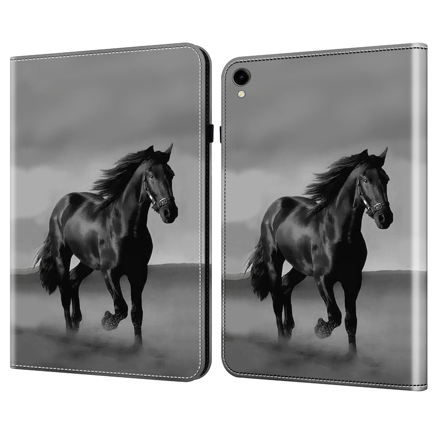 For Samsung Galaxy Tab S10 / S9 / Tab S9 FE Case Folio Stand PU Leather Pattern Tablet Cover - Black Horse