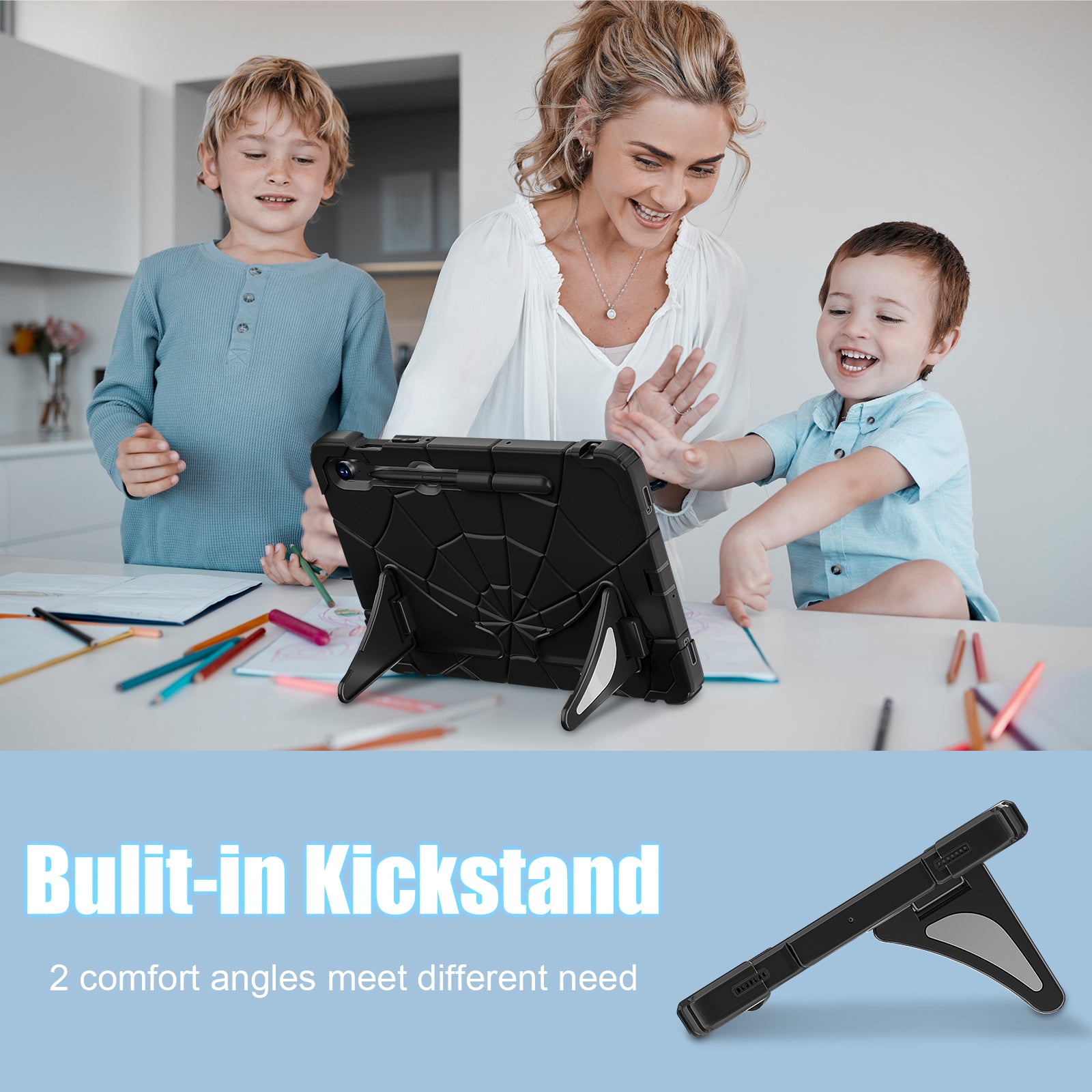 For Samsung Galaxy Tab S7 / S8 / S9 SM-X710 / S9 FE Case Spider Web Silicone+PC Rugged Protective Cover - Black+Black