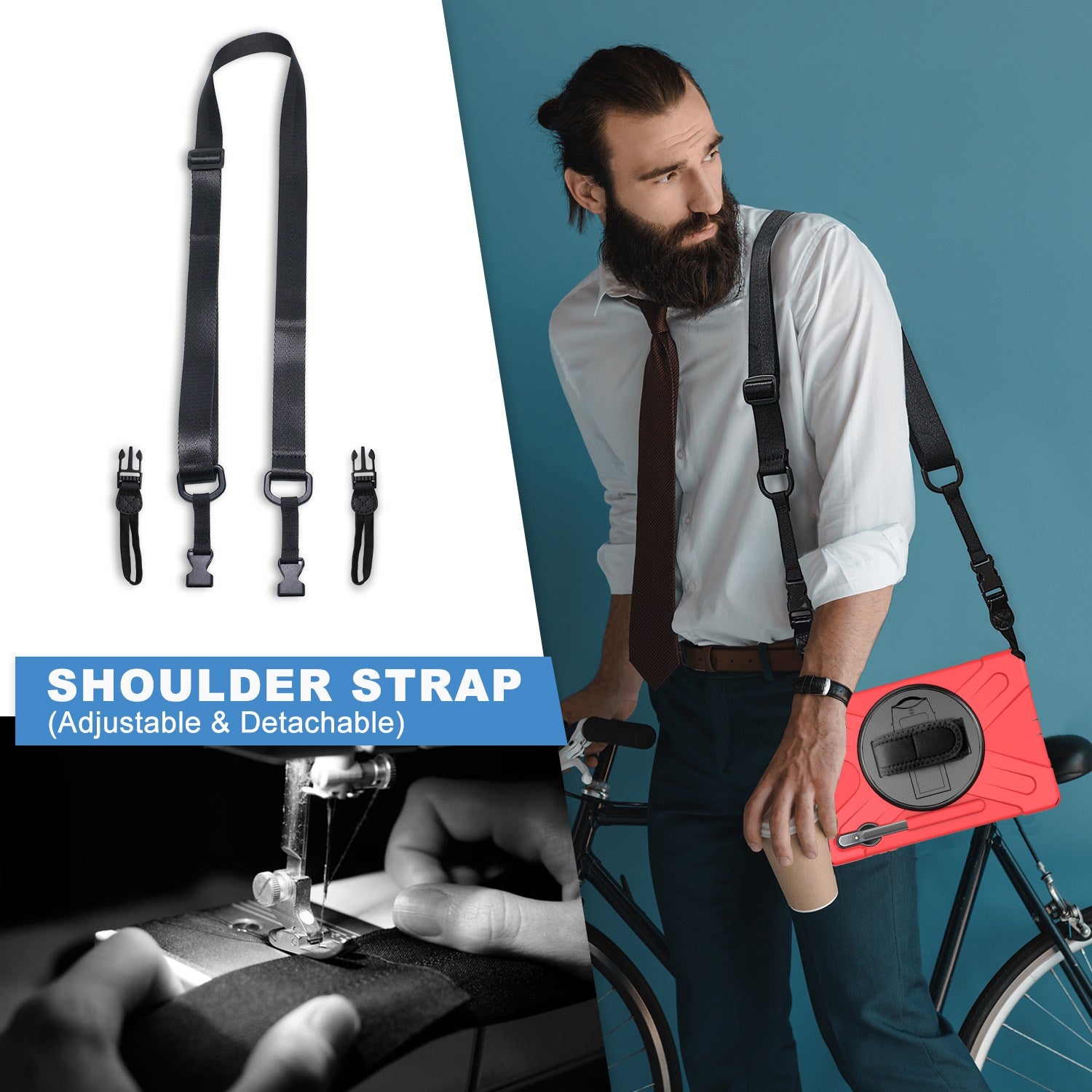 For Samsung Galaxy Tab S7+ / S8+ T970 / X800 / S7 FE T730 / S9+ X810 / S9 FE+ X610 Kickstand PC + Silicone Tablet Case with Shoulder Strap - Red