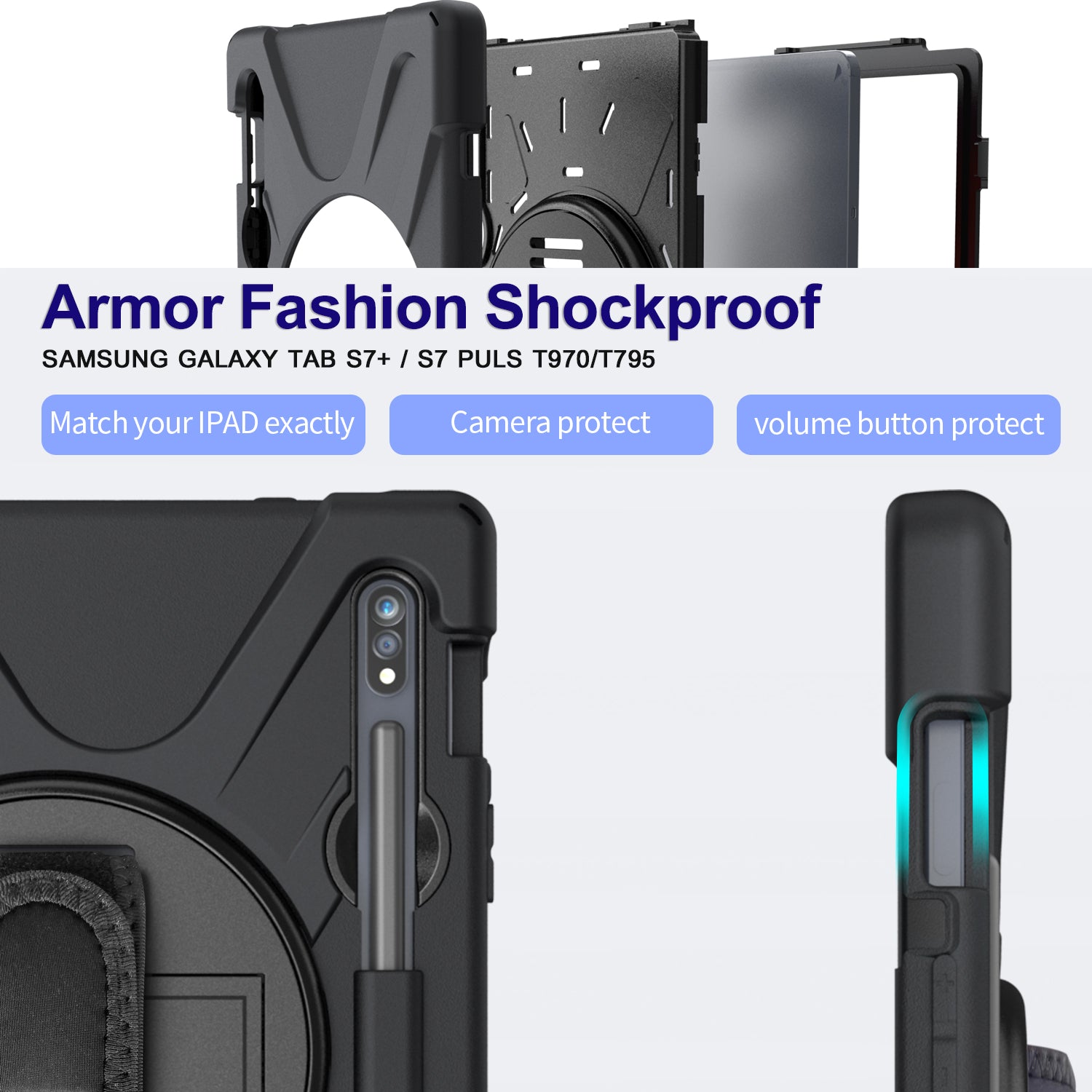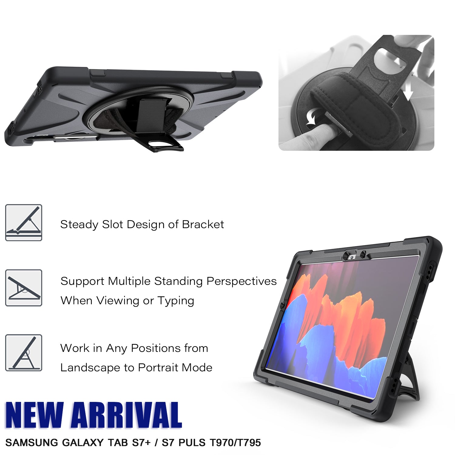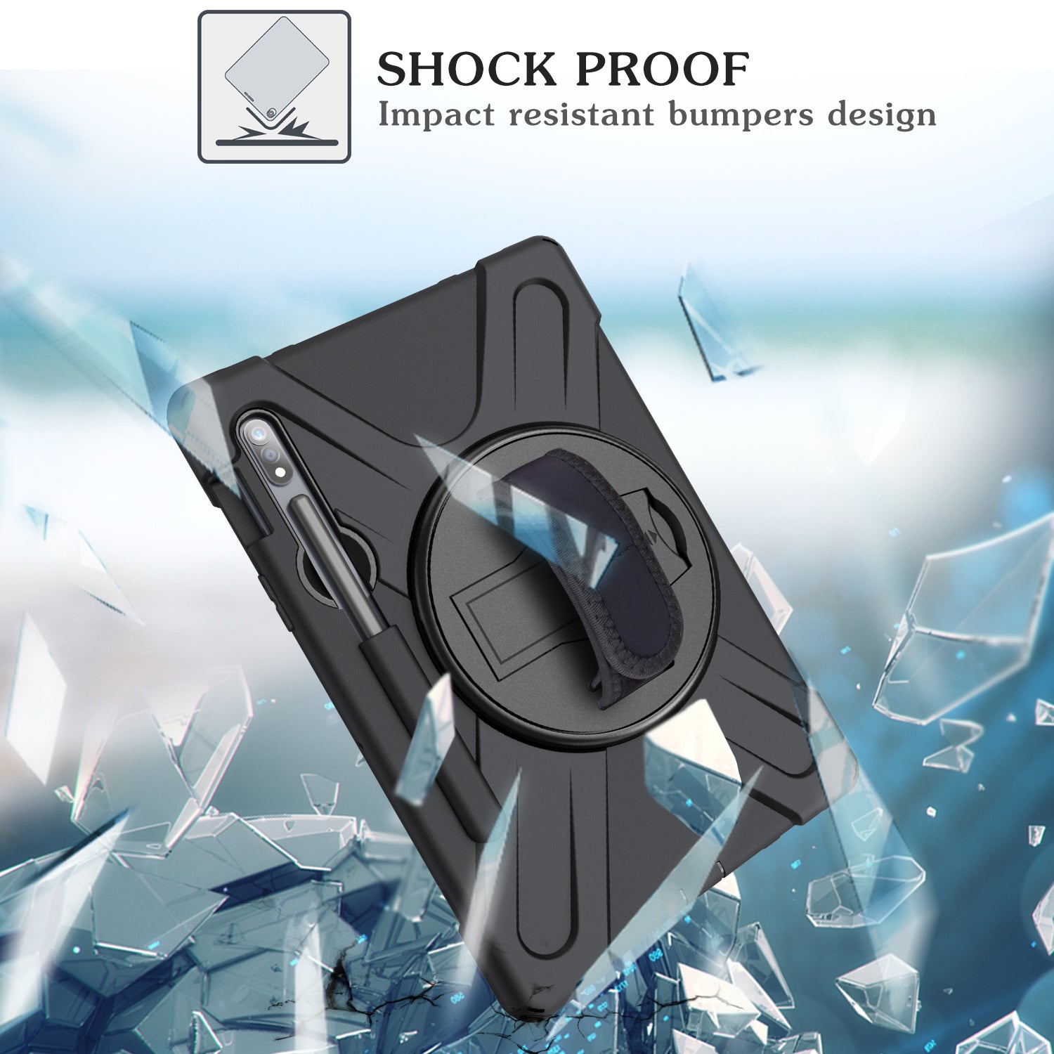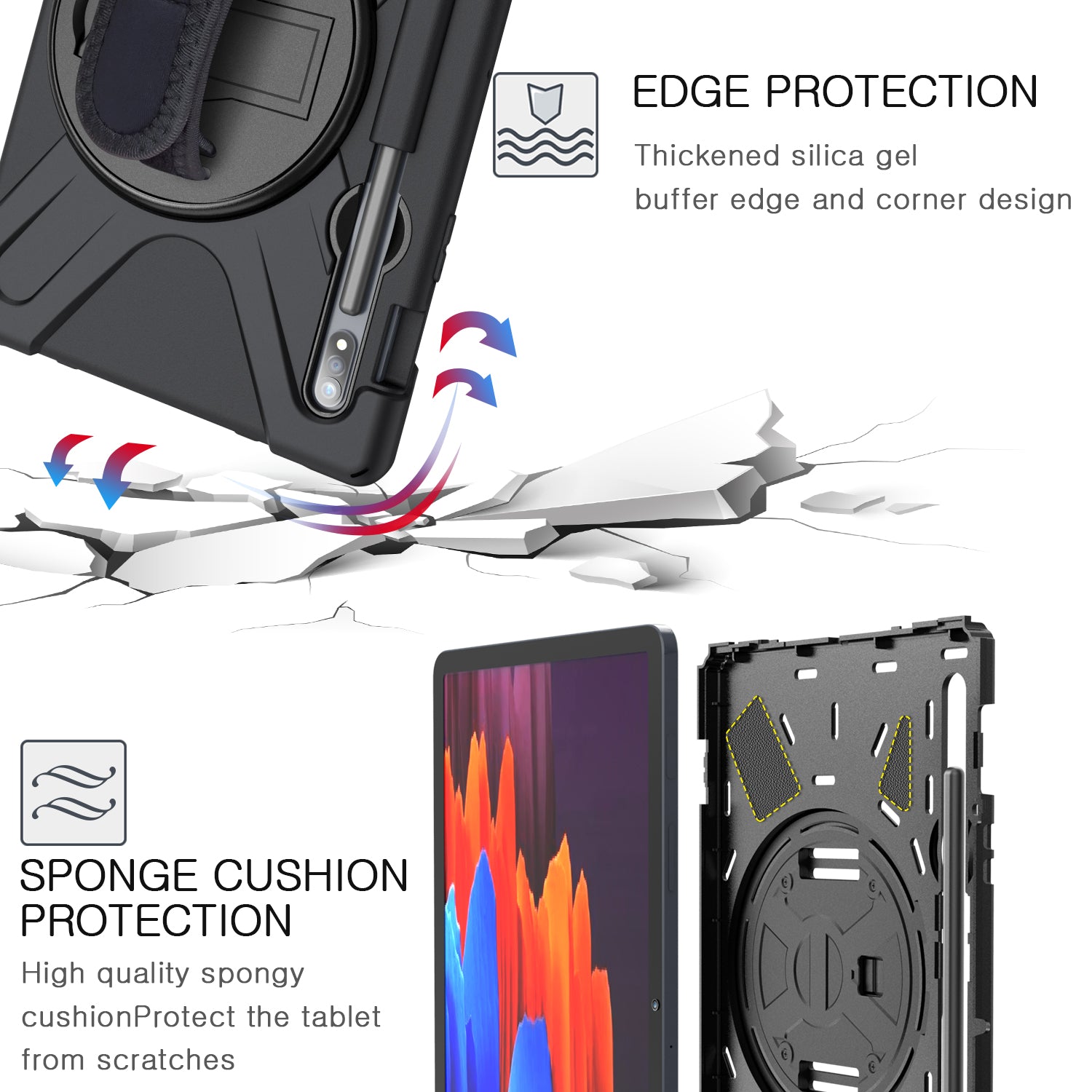 For Samsung Galaxy Tab S7 T870 T875 / S8 X700 / S9 X710 / S9 FE X510 360° Swivel Kickstand PC + Silicone Tablet Case - Black
