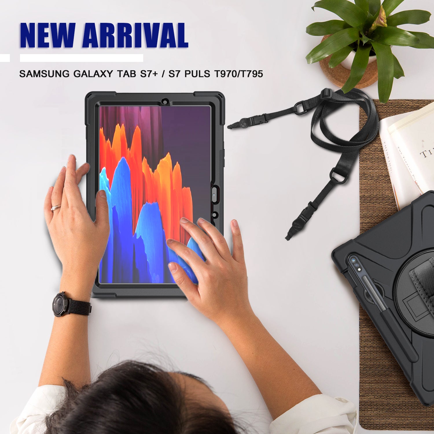 •1 x 360° Swivel Kickstand Handy Strap PC + Silicone Combo Tablet Case