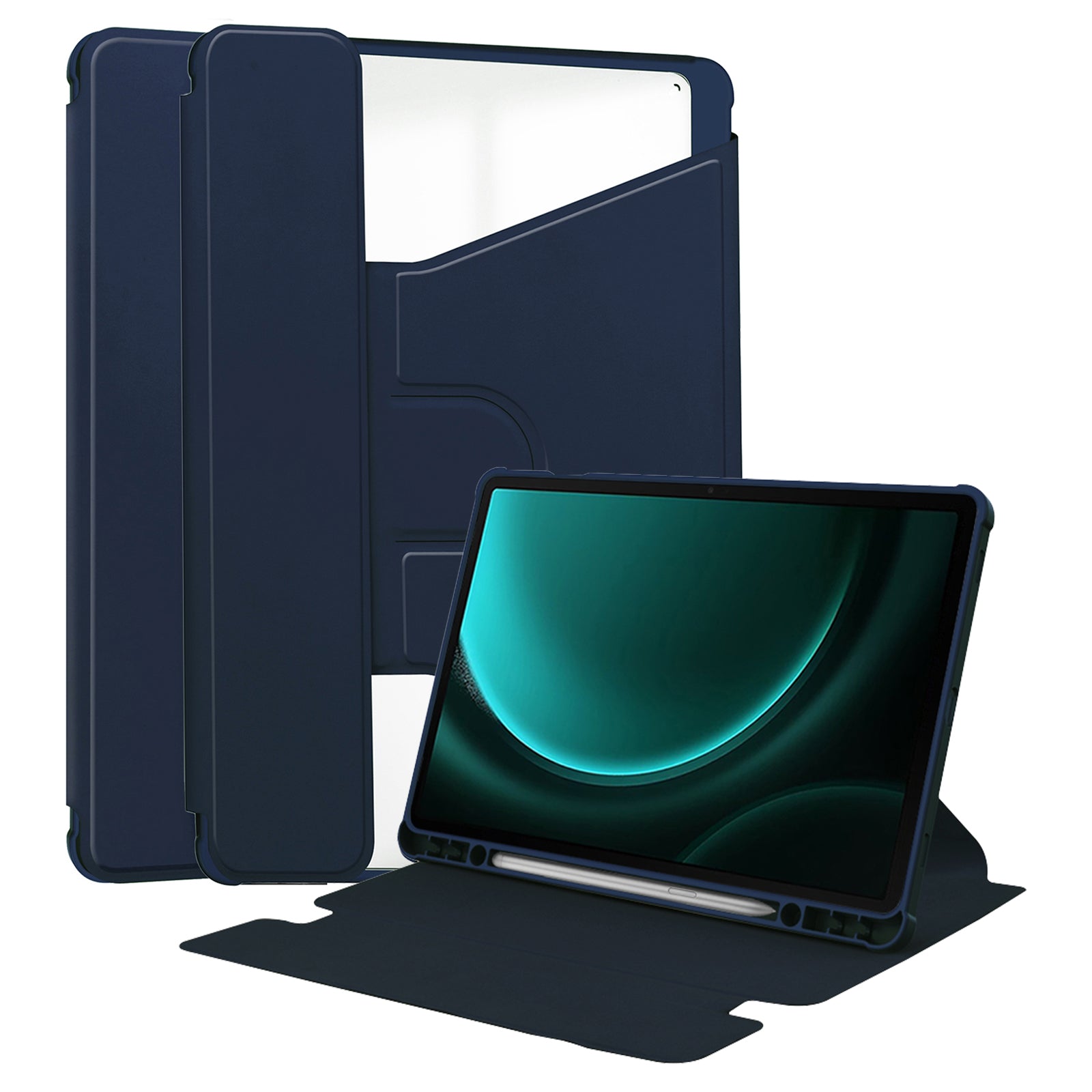For Samsung Galaxy Tab S9 FE+ Case Rotating Stand Tablet Cover (without Keyboard) - Dark Blue