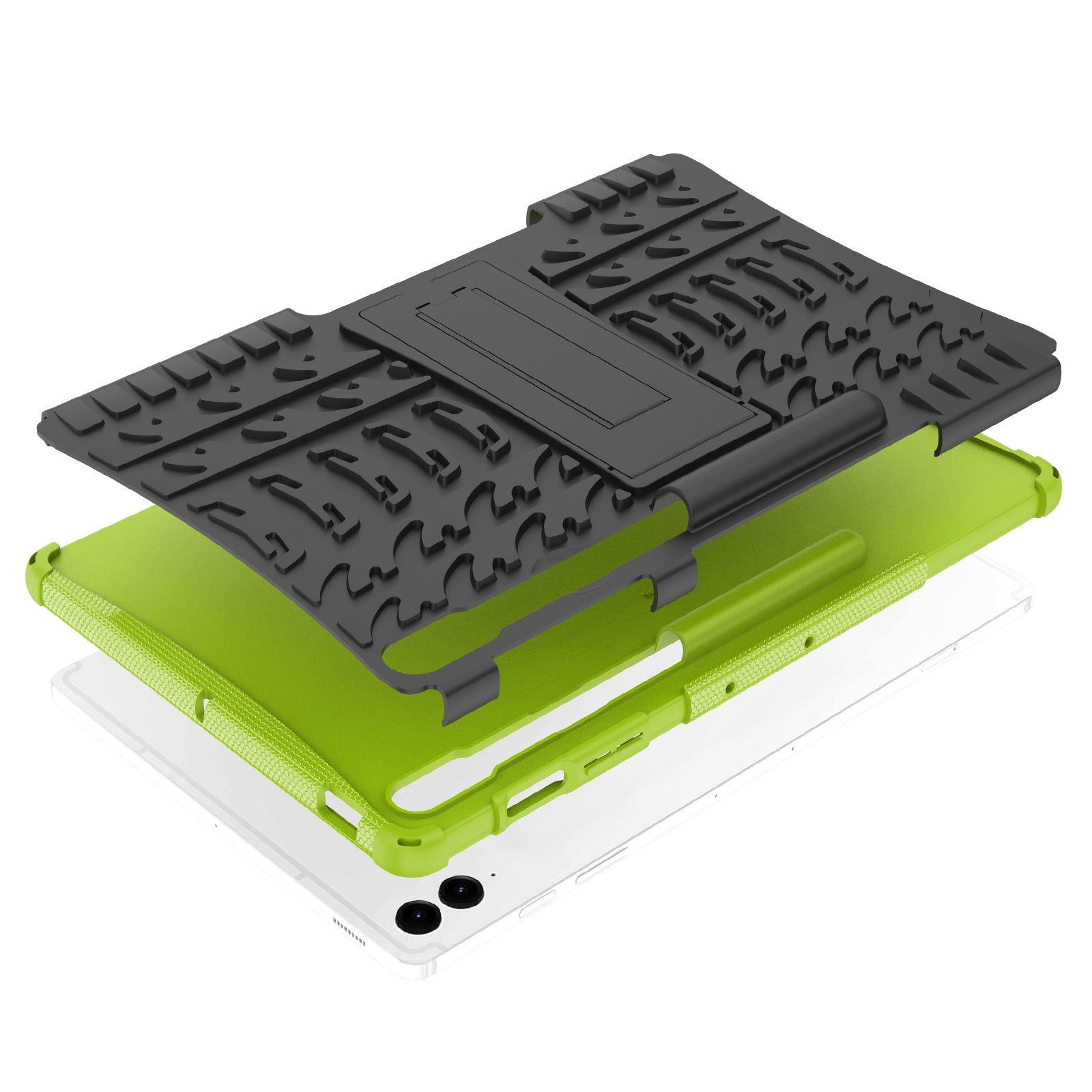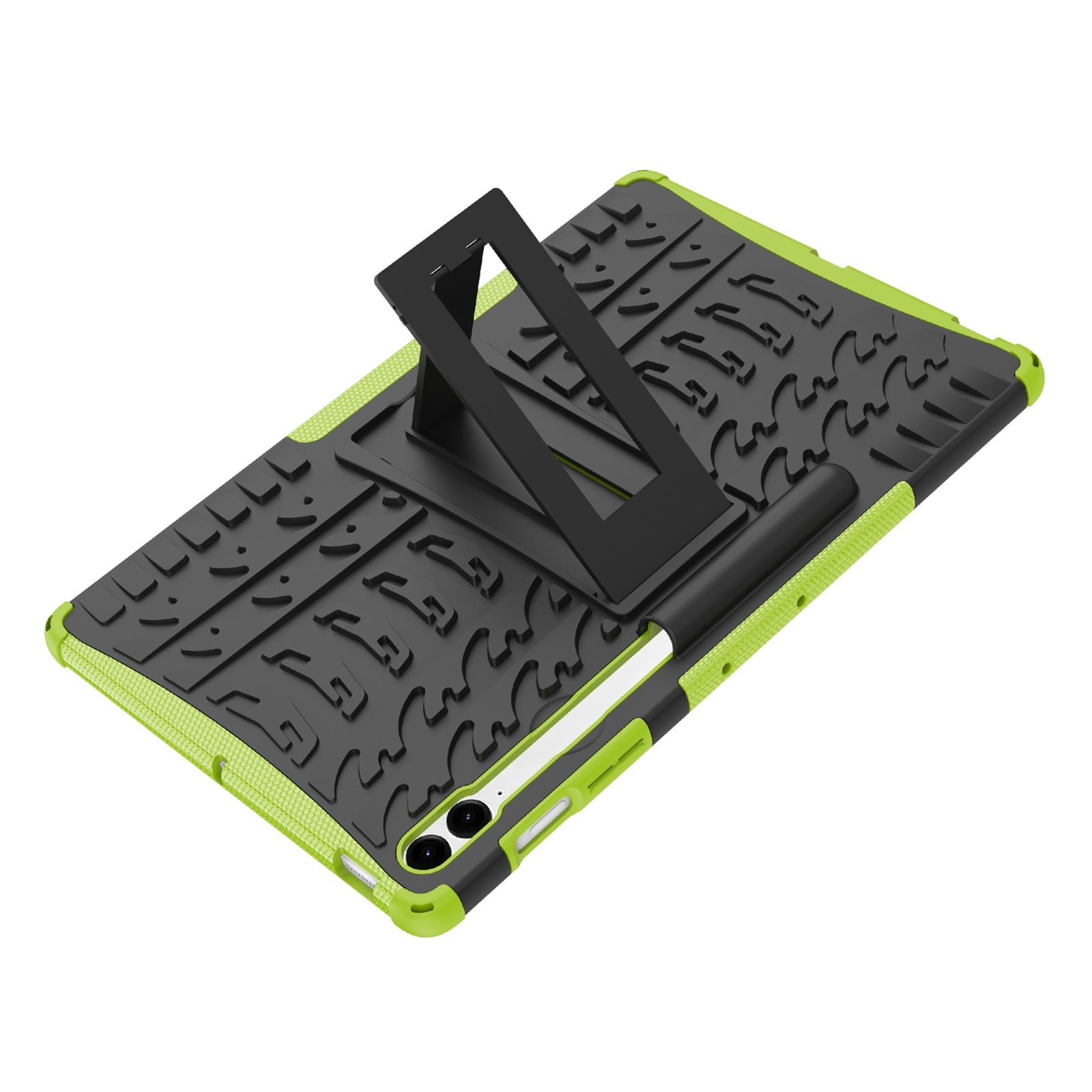 For Samsung Galaxy Tab S9 FE+ Case Tire Texture Kickstand TPU+PC Tablet Cover - Green