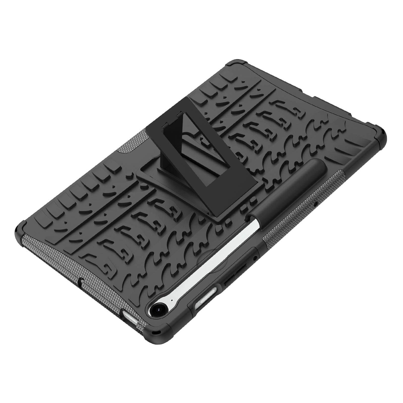 For Samsung Galaxy Tab S9 FE Kickstand Case TPU+PC Tablet Cover Tire Texture - Black
