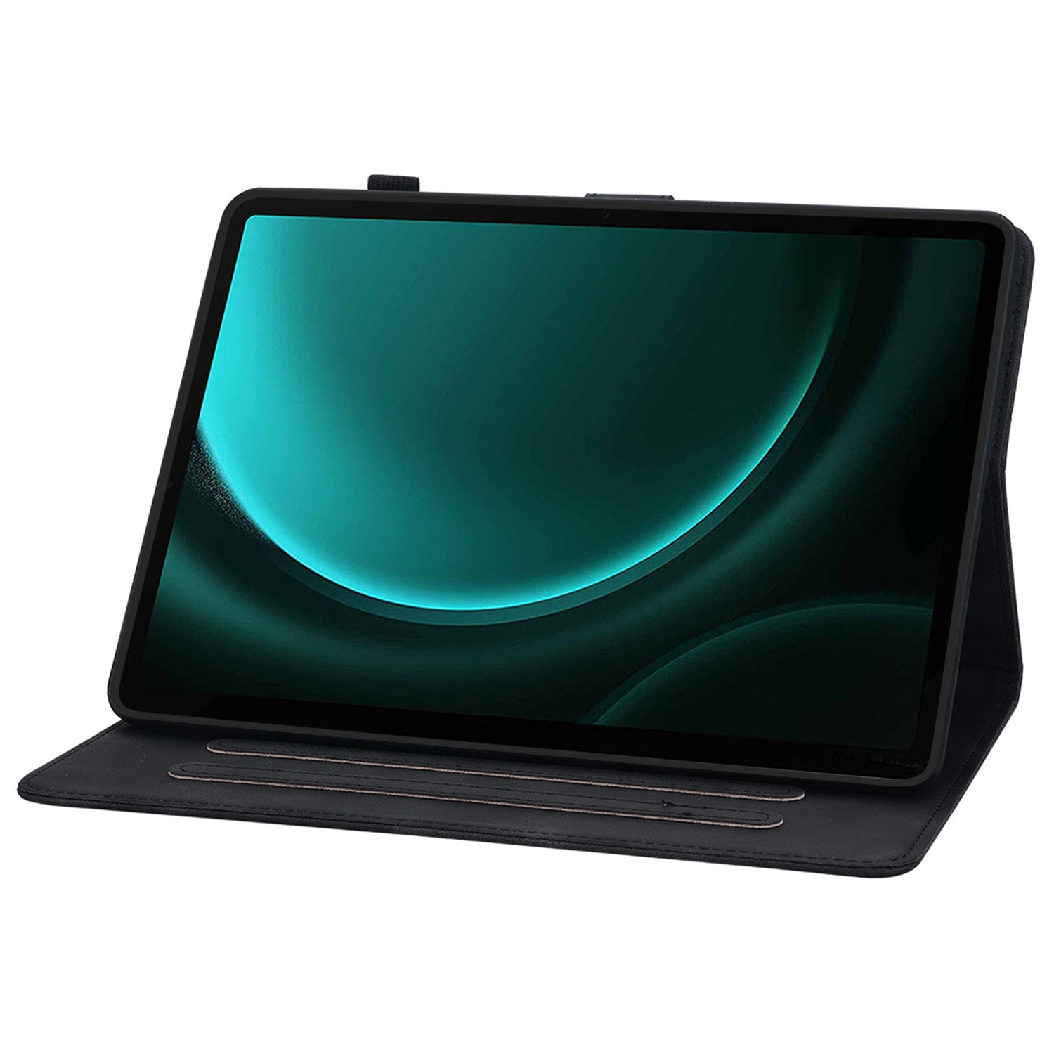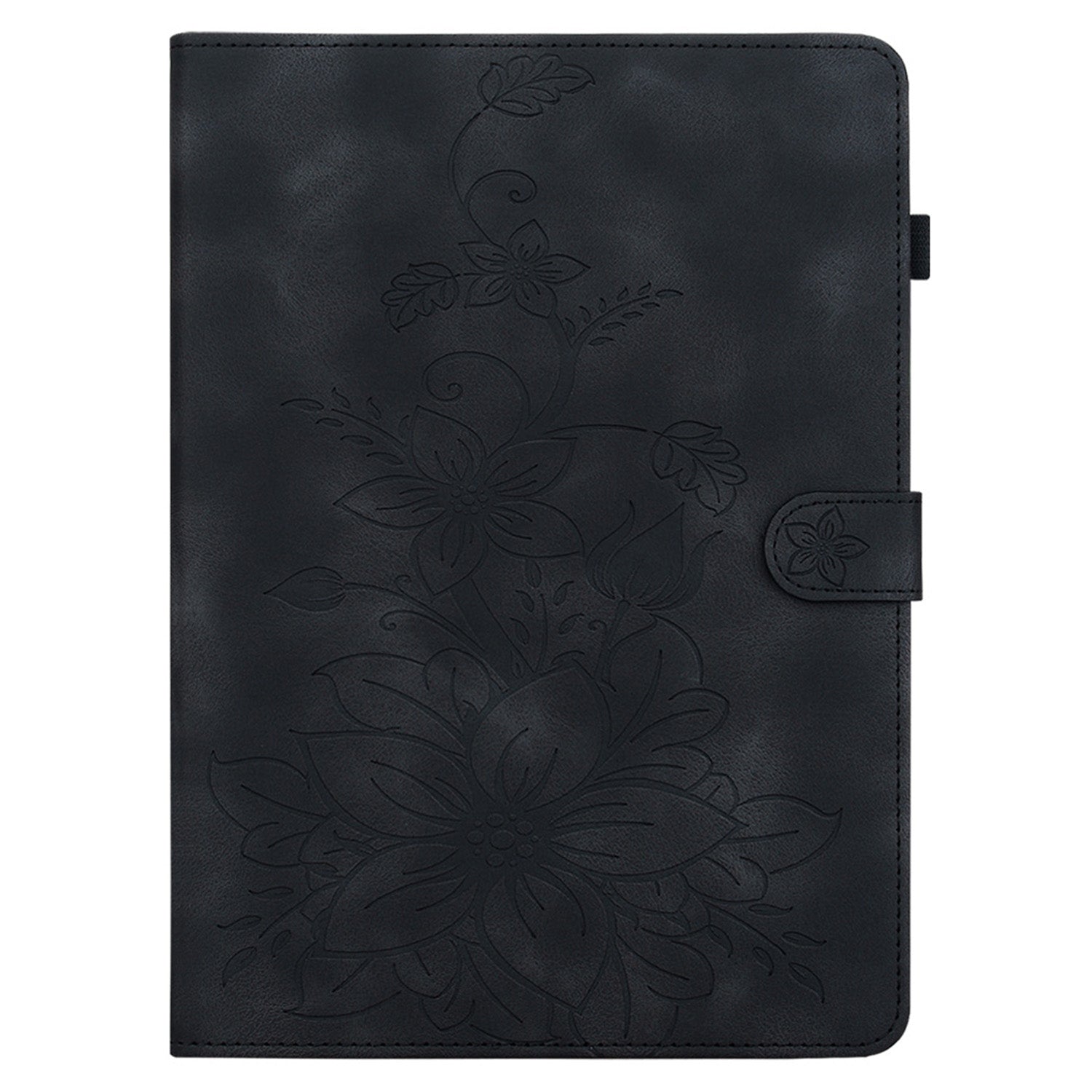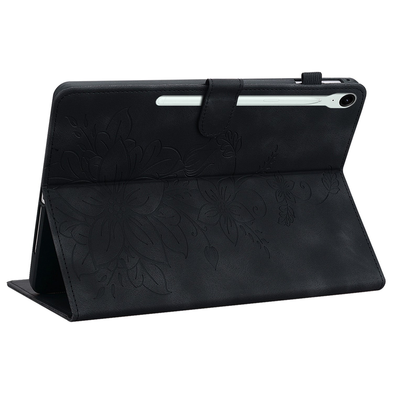 For Samsung Galaxy Tab S9 FE Leather Case Lily Flower Pattern Stand Protective Tablet Cover - Black