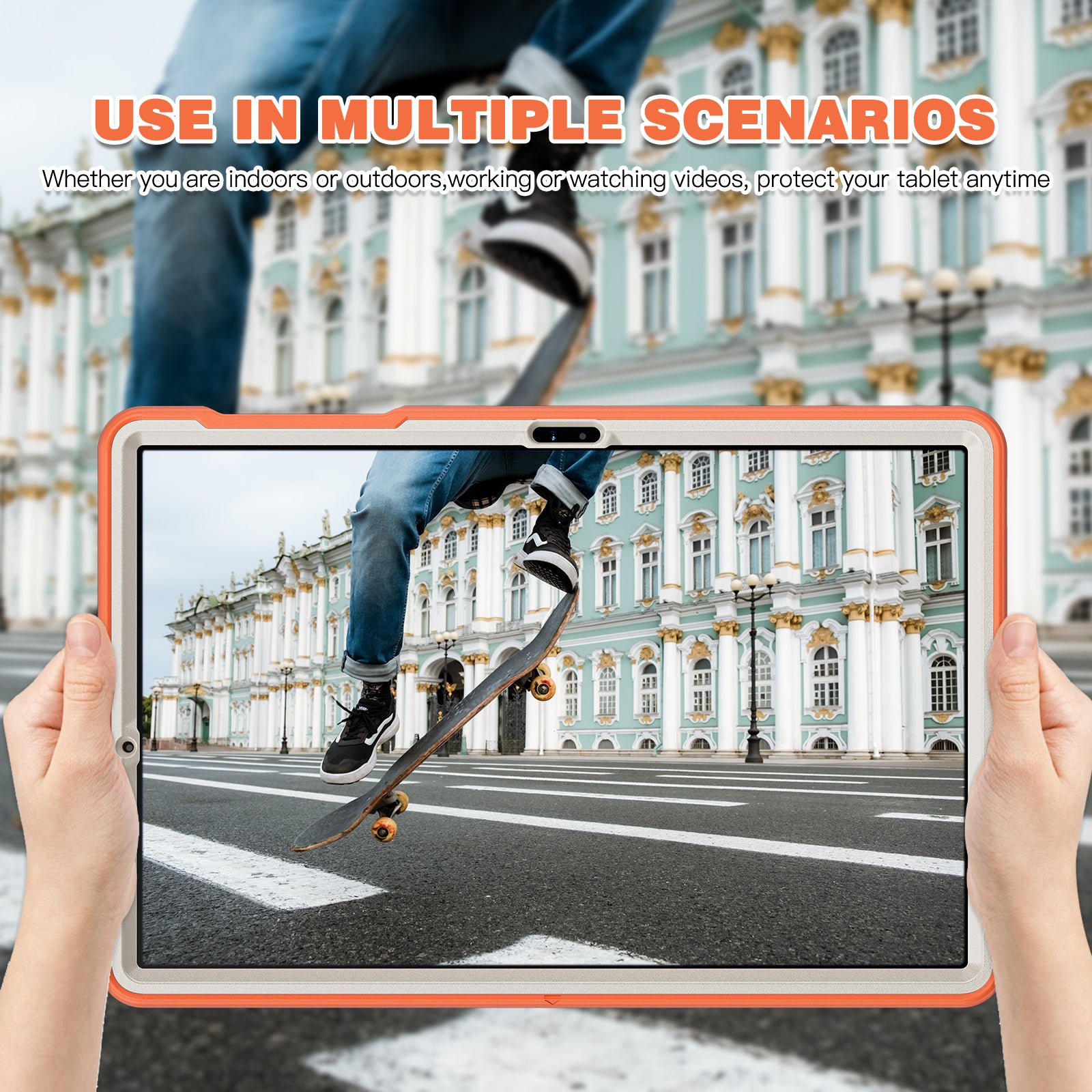 For Samsung Galaxy Tab S9 FE+ / S7+ T970 / Tab S7 FE T730 / Tab S8+ X800 / Tab S9+ X810 Case Pen Holder PC+TPU Tablet Kickstand Cover - Coral Orange