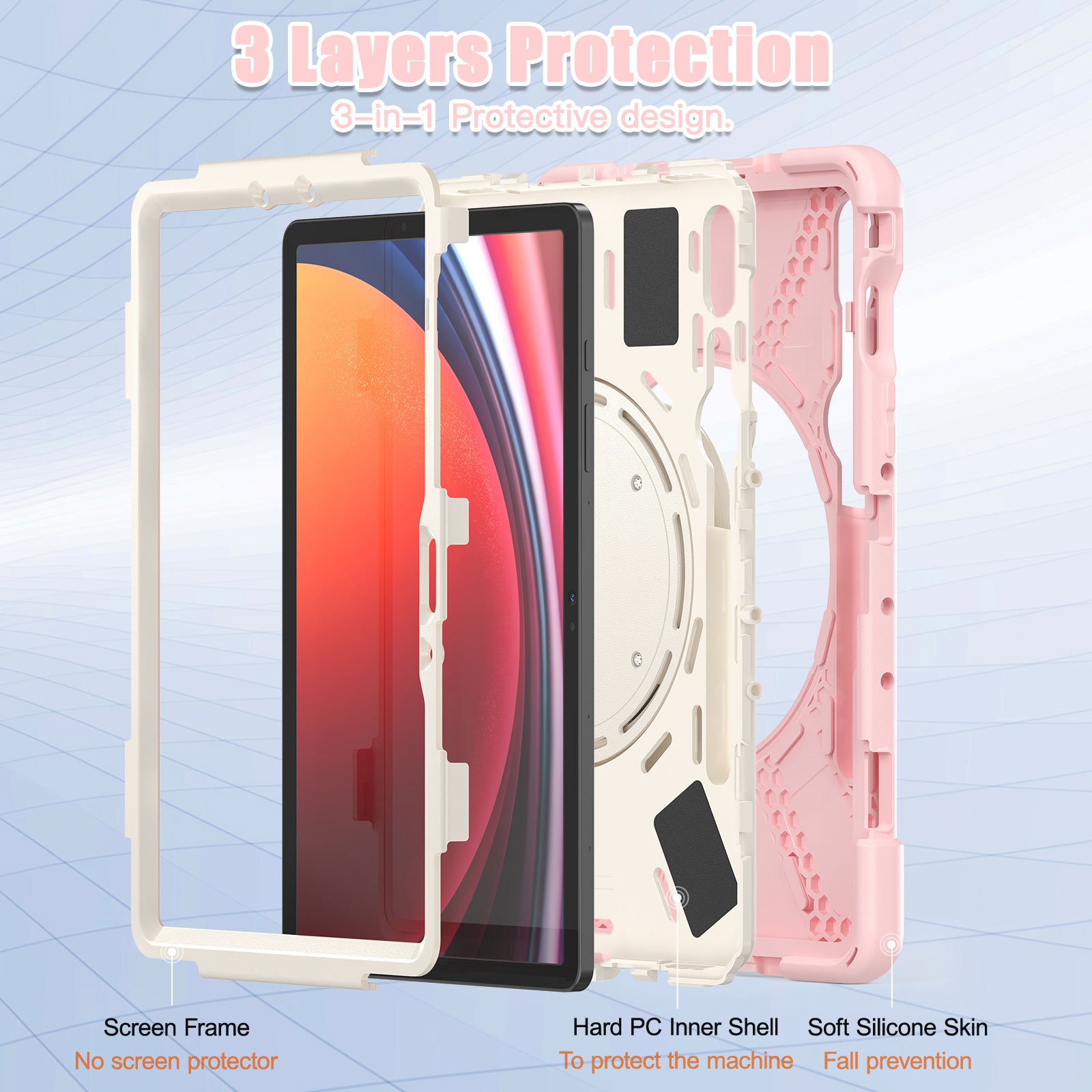 For Samsung Galaxy Tab S9 FE / S9 / S8 / S7 Hard PC+Soft Silicone Case Rotating Kickstand Shockproof Tablet Cover - Pink