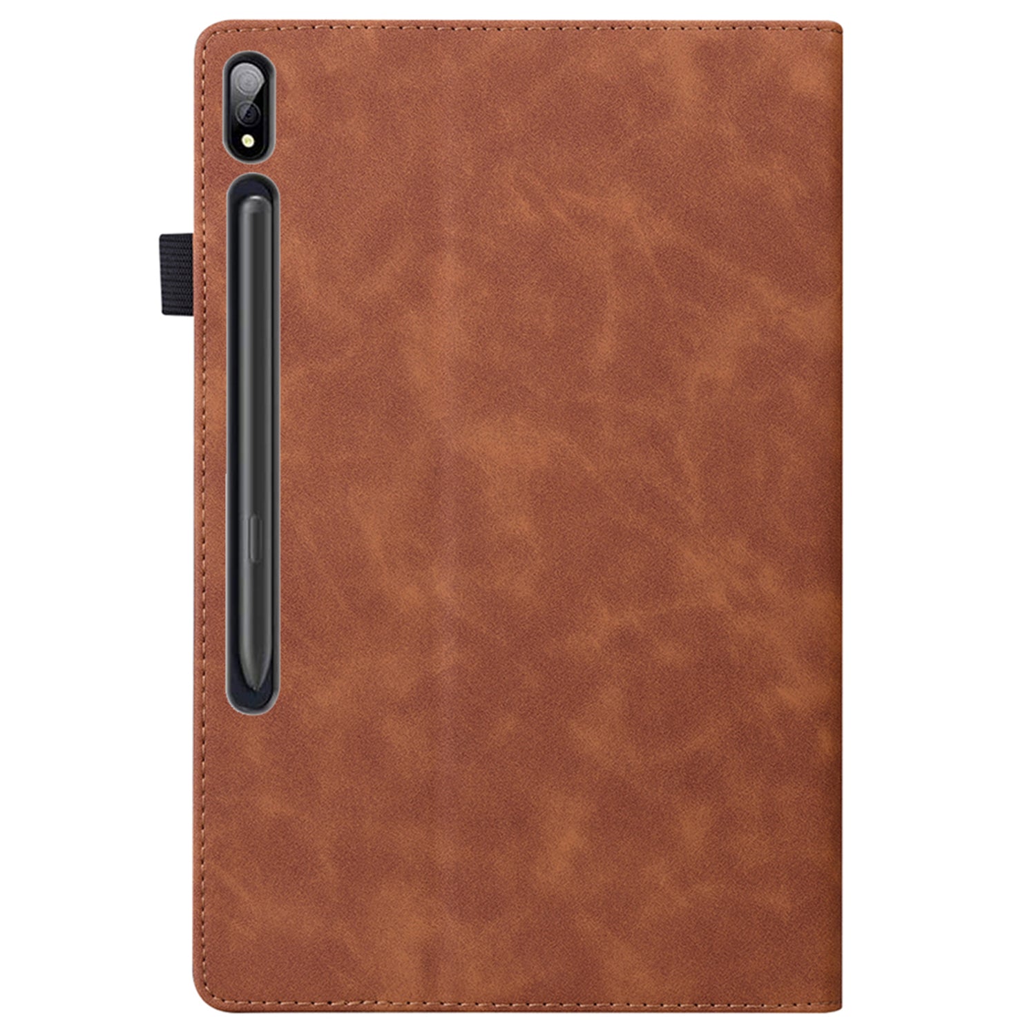 For Samsung Galaxy Tab S9 FE / S9 / S8 / S7 PU Leather Business Wallet Protective Case Stand Shockproof Cover with Pencil Holder - Brown