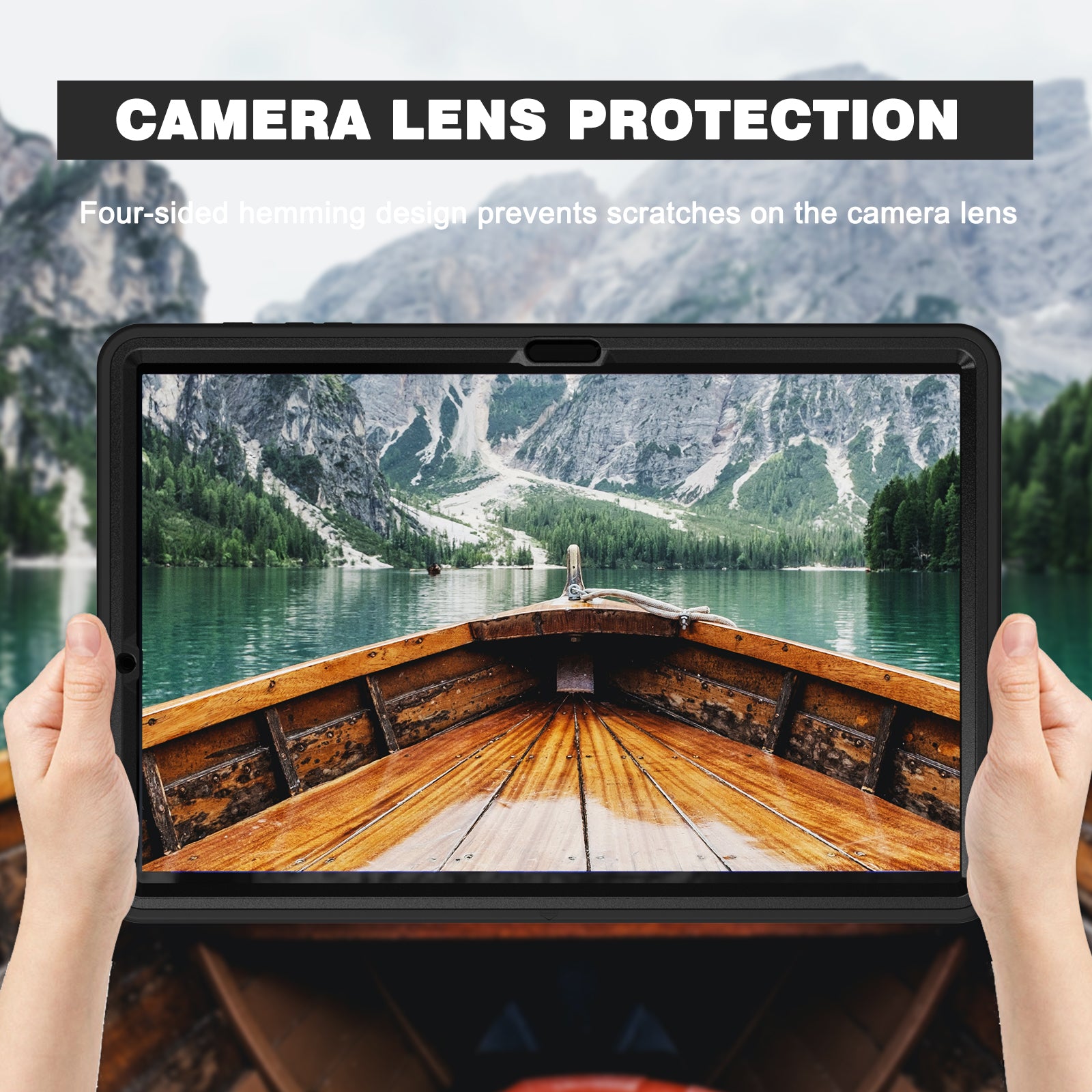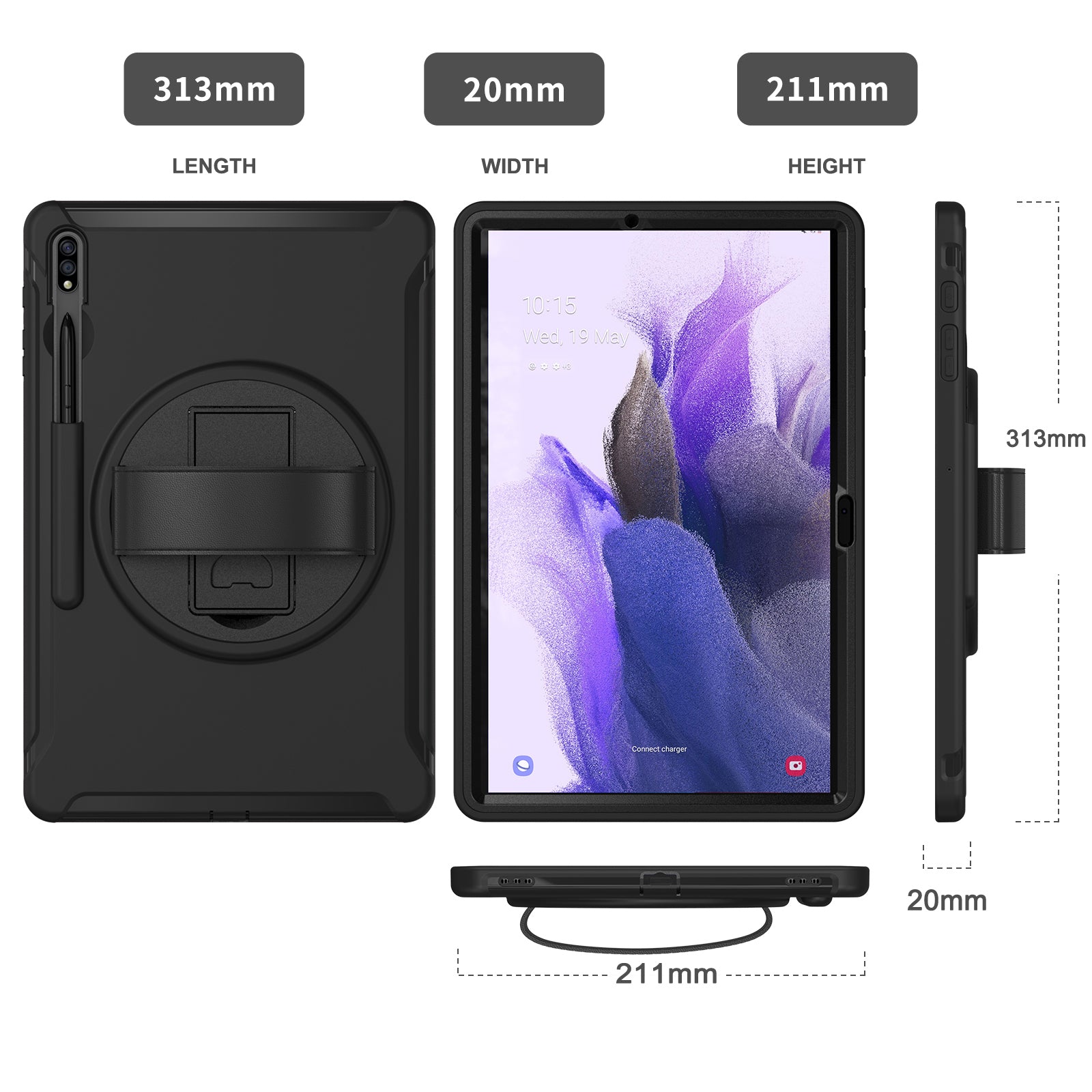 For Samsung Galaxy Tab S9 FE+ / S9+ / S8+ / S7+ / S7 FE T730 / T735 / T736B / T736N 360° Rotary Kickstand PC + TPU Drop-Resistant Tablet Case with Handy Strap - Black