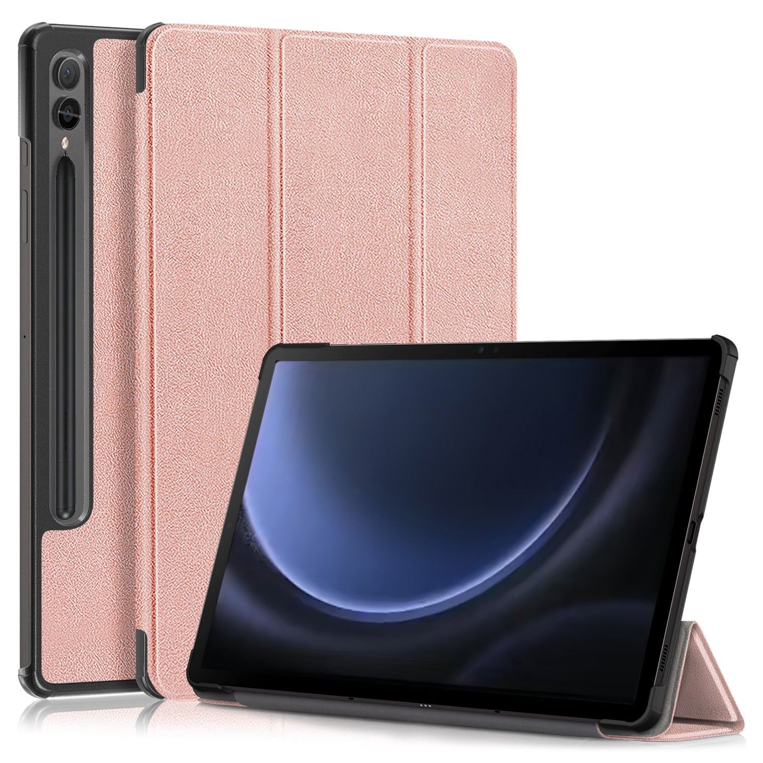 For Samsung Galaxy Tab S9 FE+ SM-x610 / SM-616 Case Leather Tablet Cover with Trifold Stand - Rose Gold