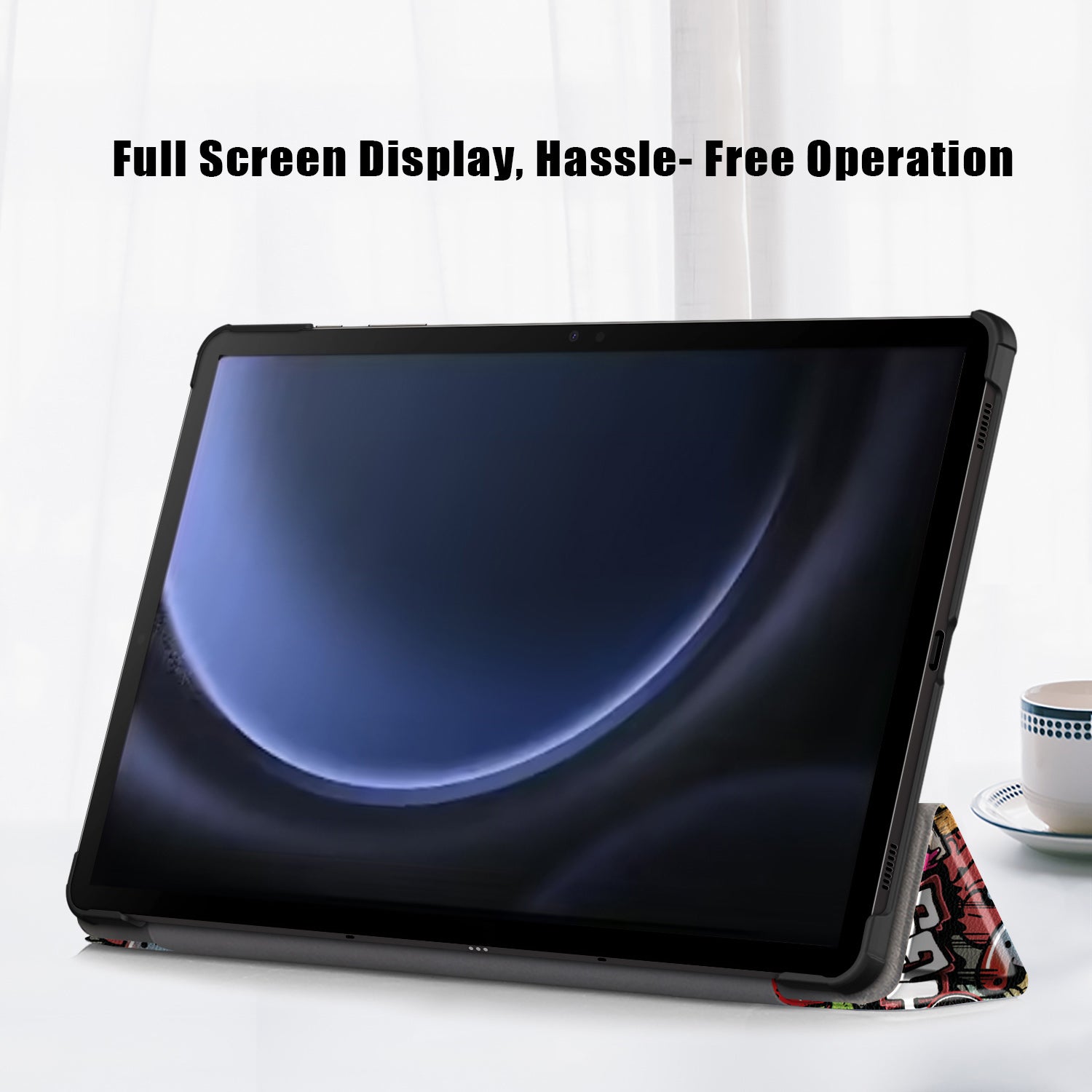 For Samsung Galaxy Tab S9 FE+ SM-x610 / SM-616 Case Tri-fold Stand Leather Tablet Cover - Graffiti