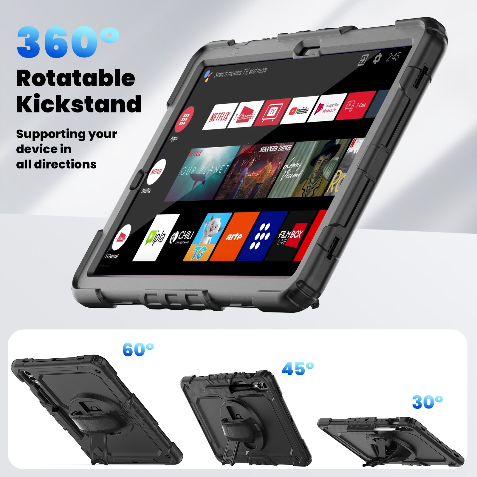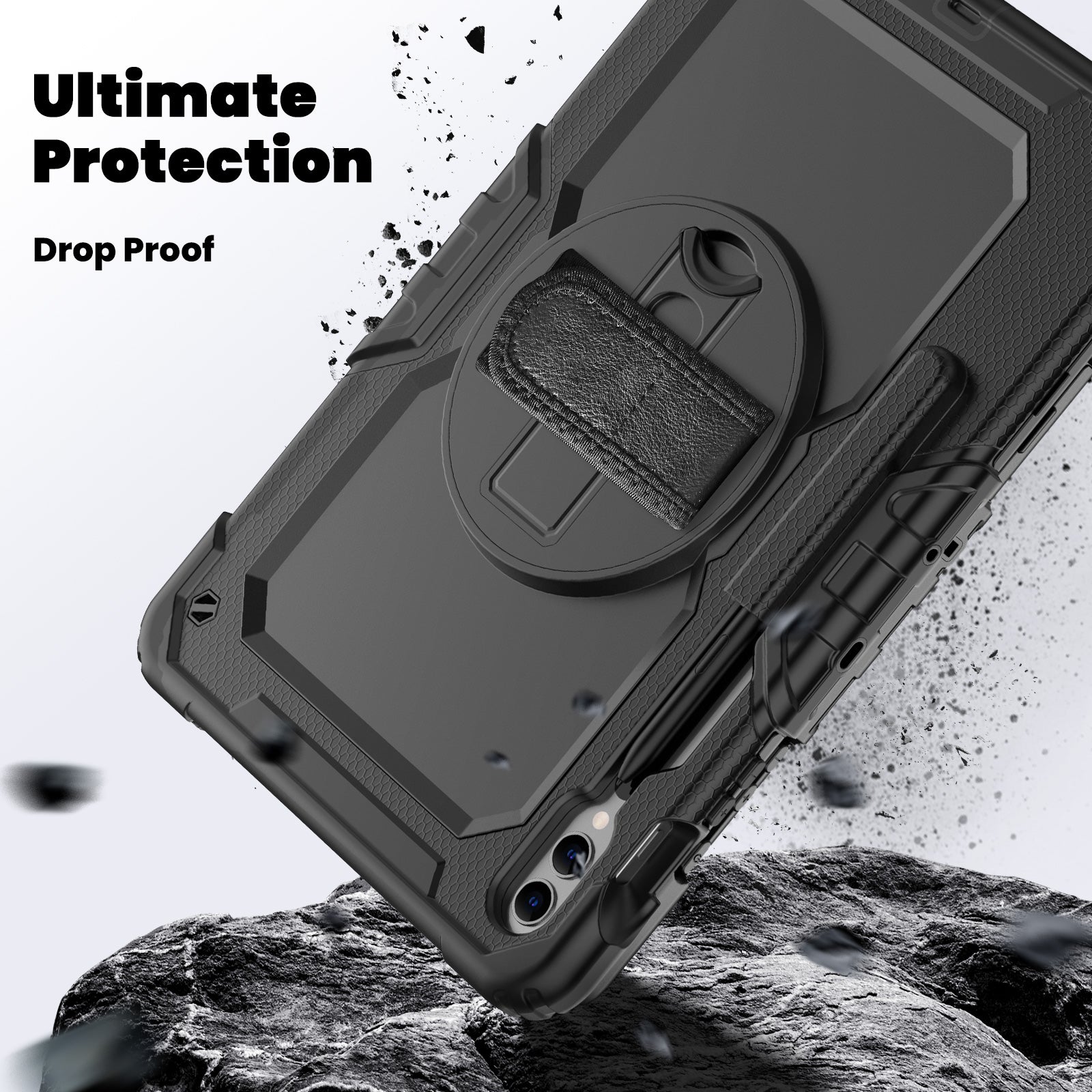 For Samsung Galaxy Tab S9 FE+ SM-X610 SM-X616B Tablet Cover PC+Silicone Case with PET Screen Protector and Kickstand - Black+Black