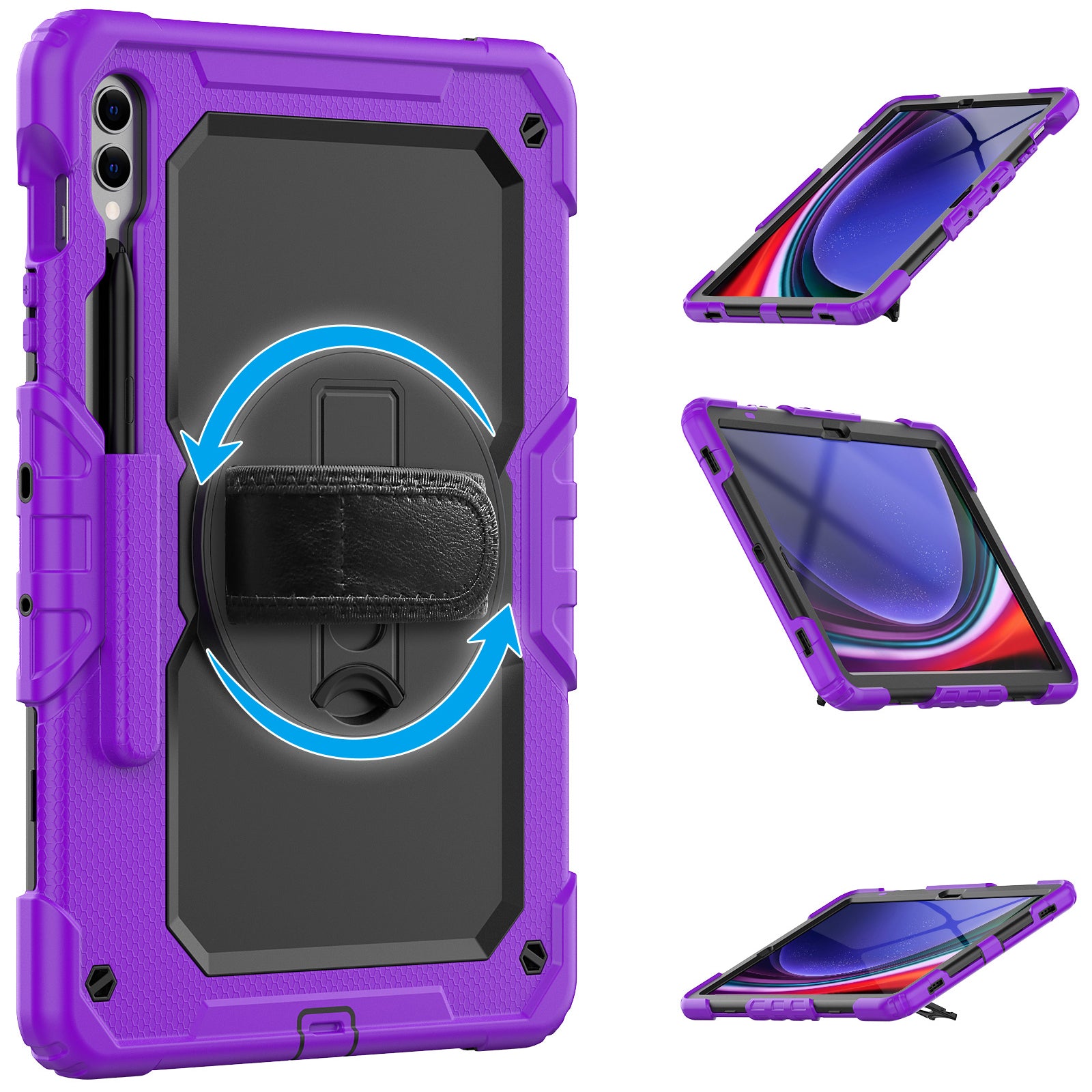 For Samsung Galaxy Tab S9 FE+ SM-X610 SM-X616B Tablet Cover PC+Silicone Case with PET Screen Protector and Kickstand - Black+Purple