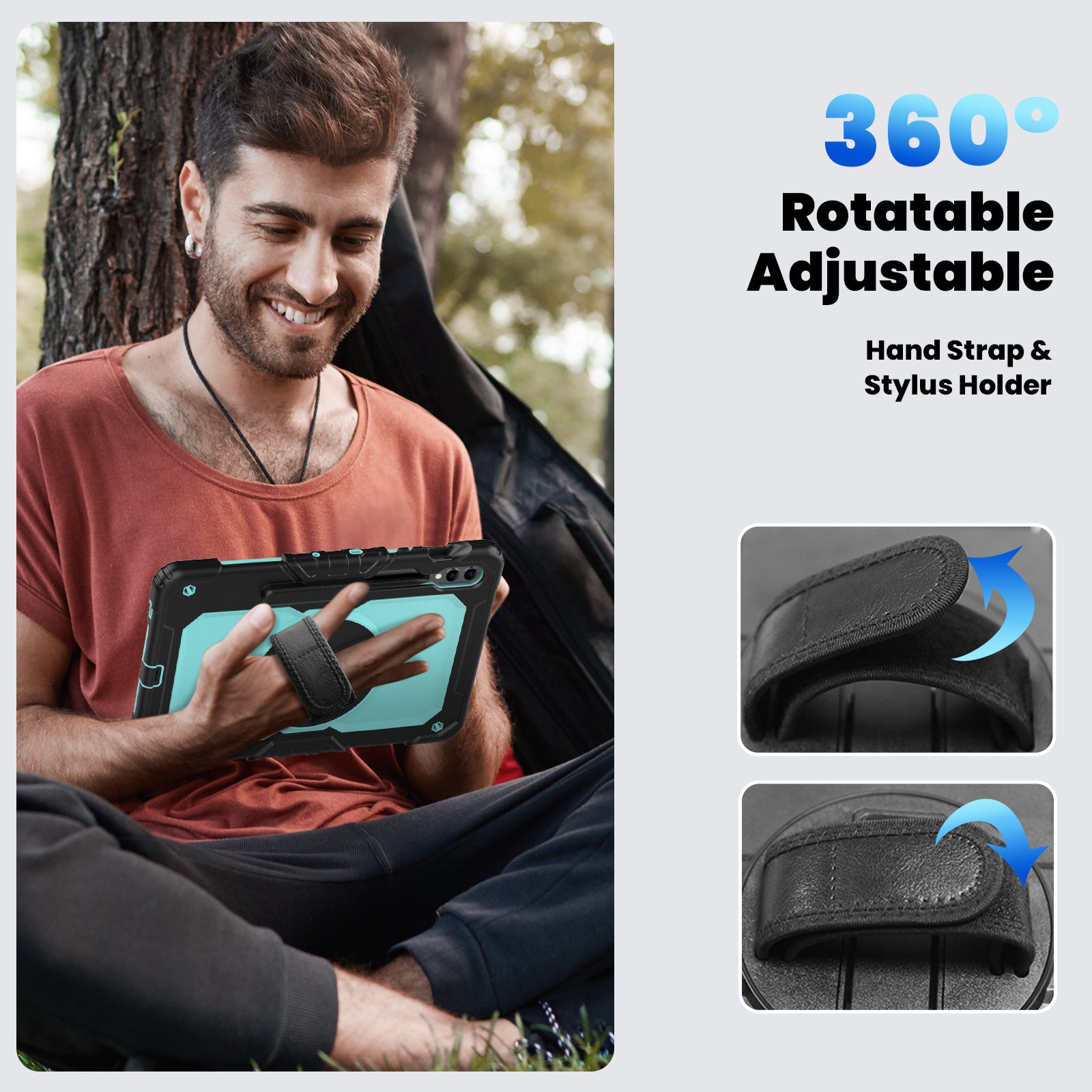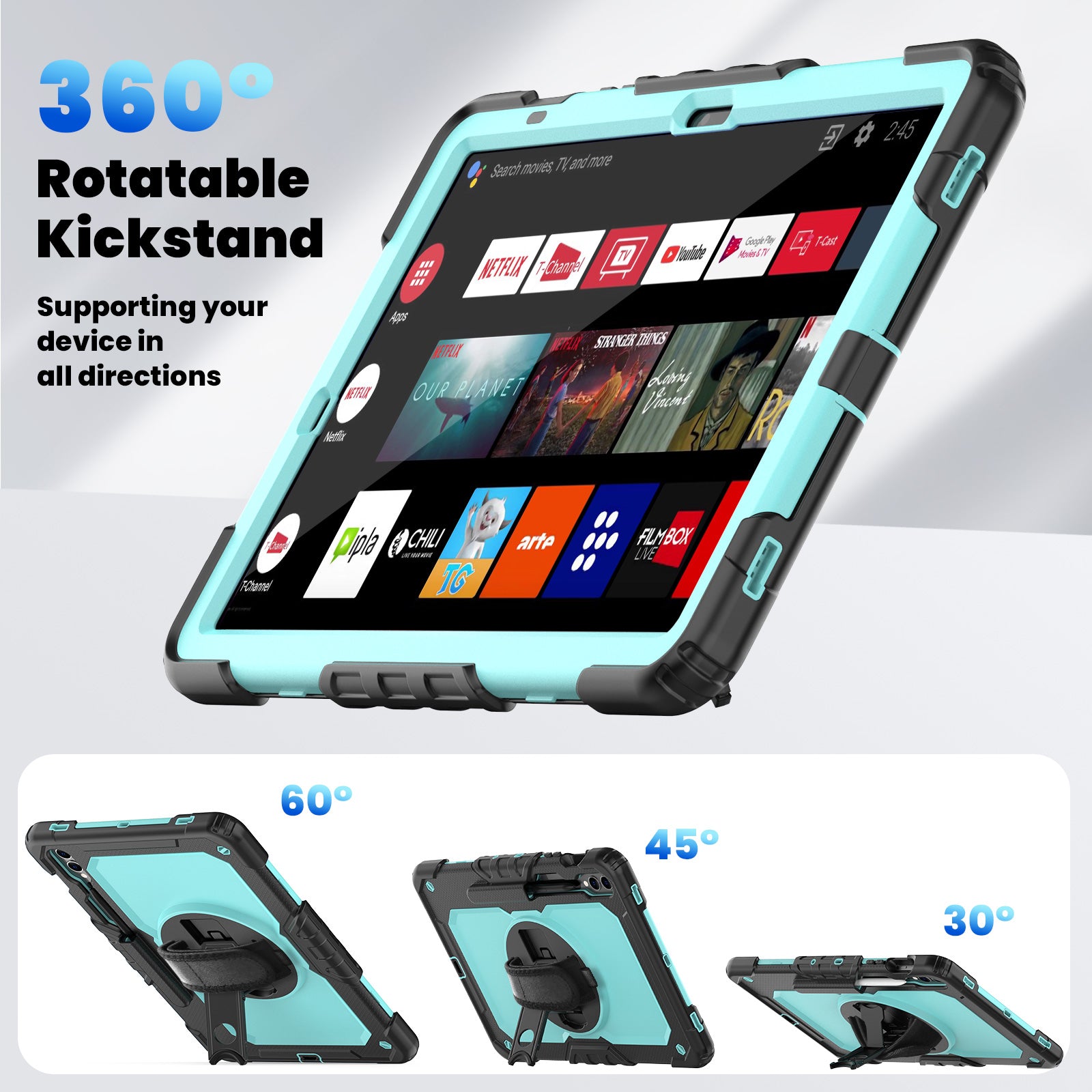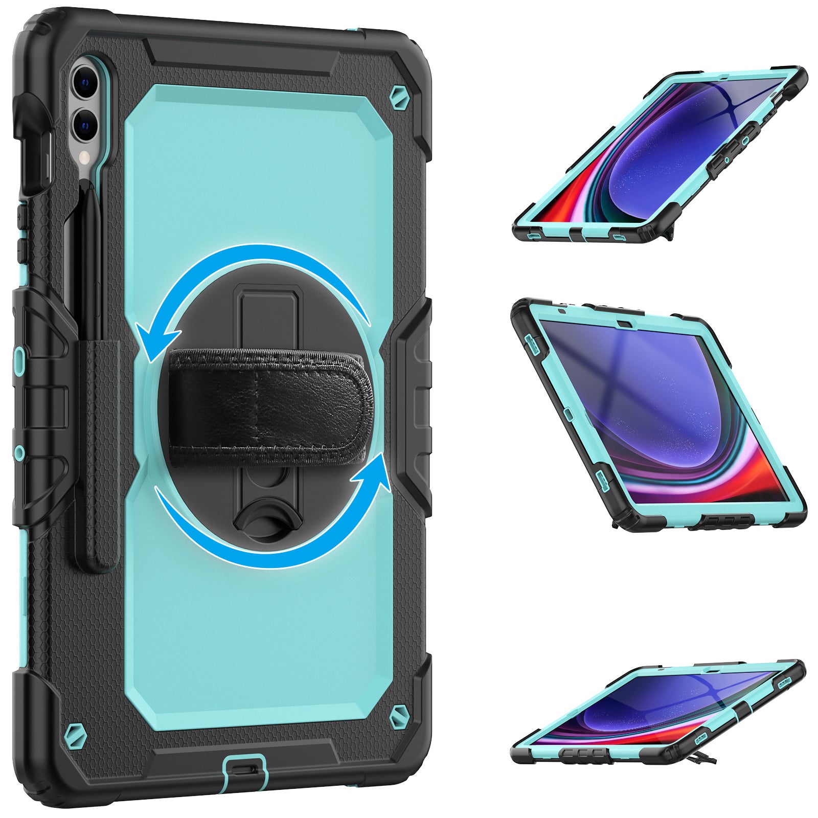 For Samsung Galaxy Tab S9 FE+ SM-X610 SM-X616B Tablet Cover PC+Silicone Case with PET Screen Protector and Kickstand -  Light Blue+Black
