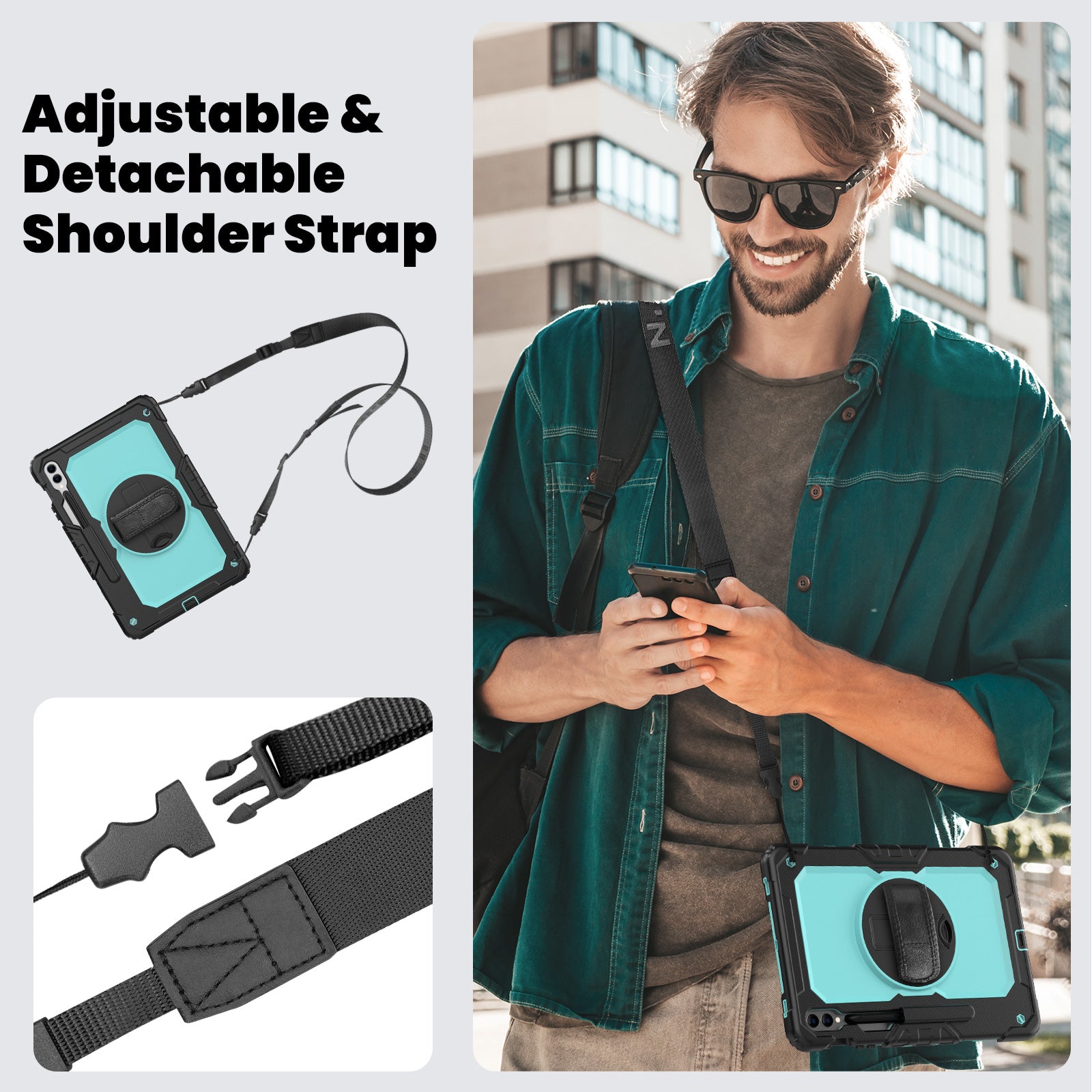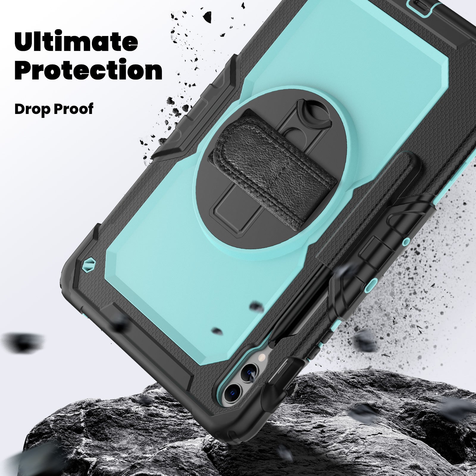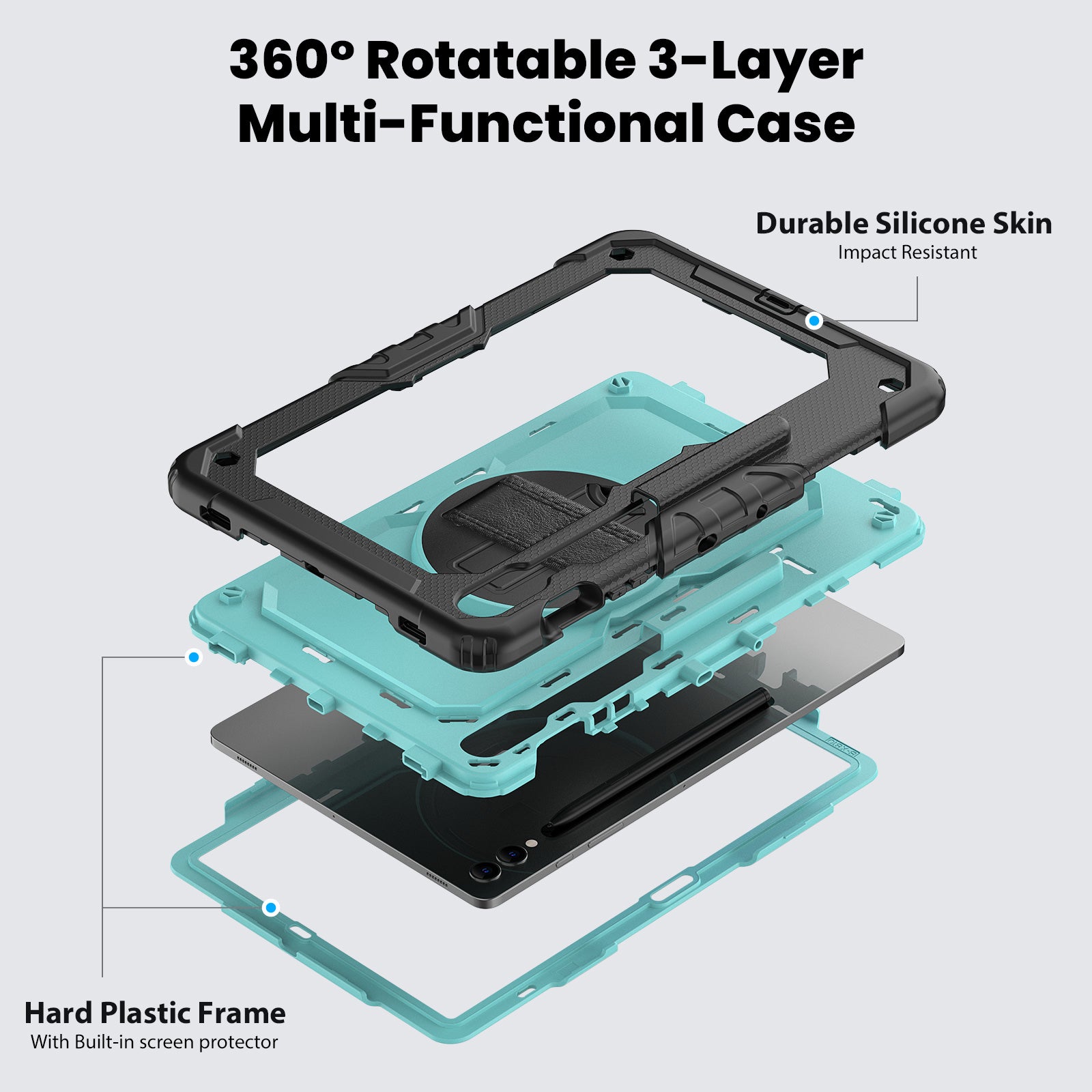 For Samsung Galaxy Tab S9 FE+ SM-X610 SM-X616B Tablet Cover PC+Silicone Case with PET Screen Protector and Kickstand -  Light Blue+Black