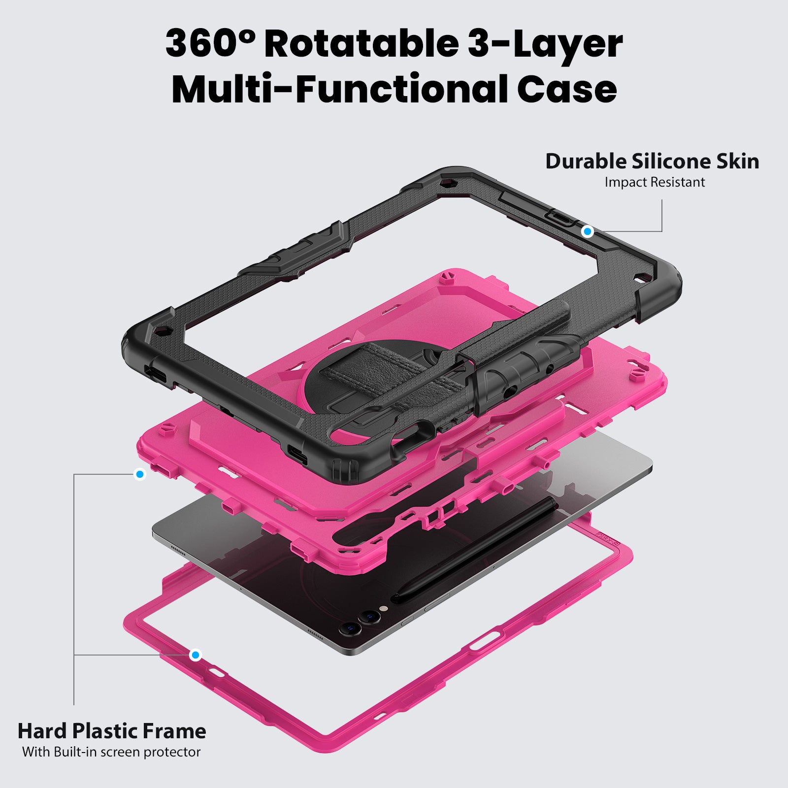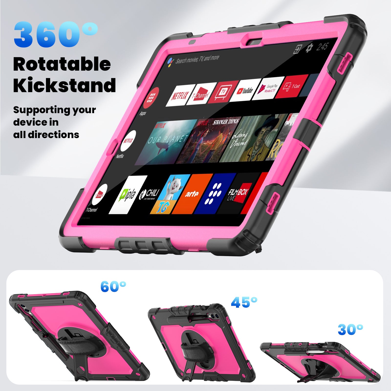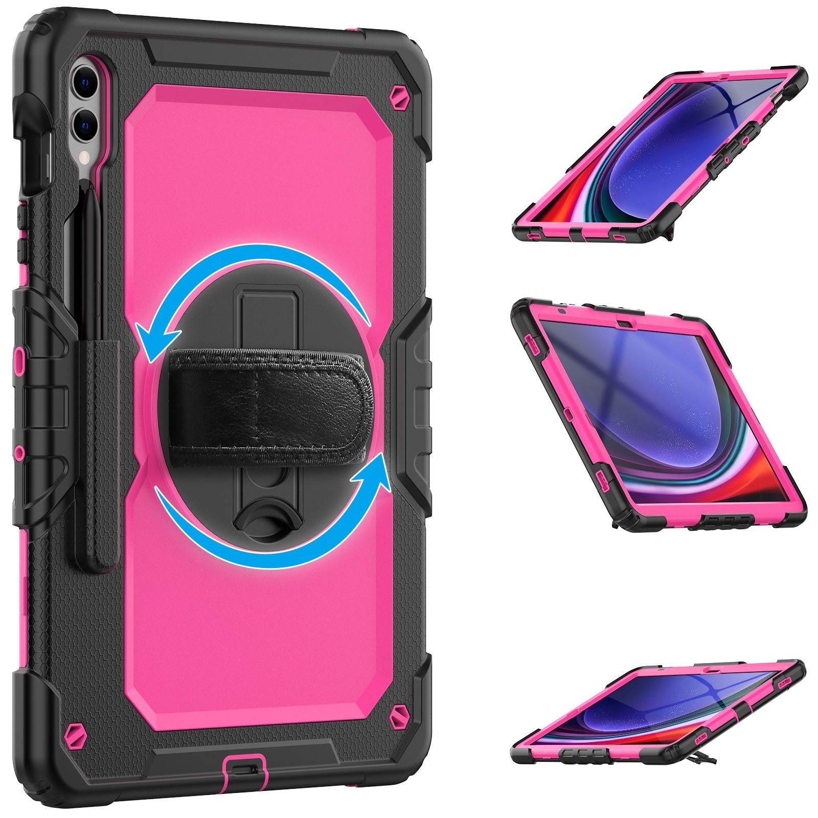 For Samsung Galaxy Tab S9 FE+ SM-X610 SM-X616B Tablet Cover PC+Silicone Case with PET Screen Protector and Kickstand - Rose +Black