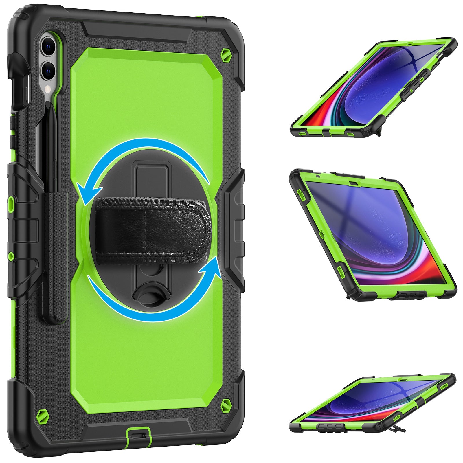 For Samsung Galaxy Tab S9 FE+ SM-X610 SM-X616B Tablet Cover PC+Silicone Case with PET Screen Protector and Kickstand - Yellow-green+Black