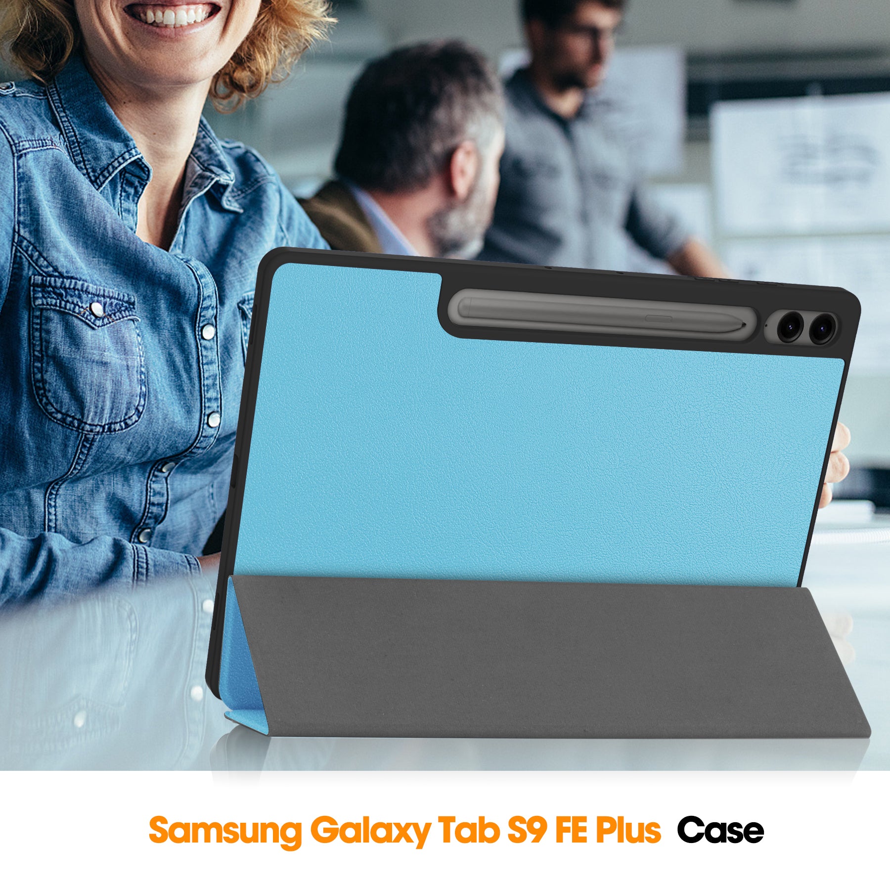 For Samsung Galaxy Tab S9 FE+ / Tab S9+ Case PU Leather+TPU Auto Sleep / Wake Tablet Cover with Pencil Holder - Sky Blue