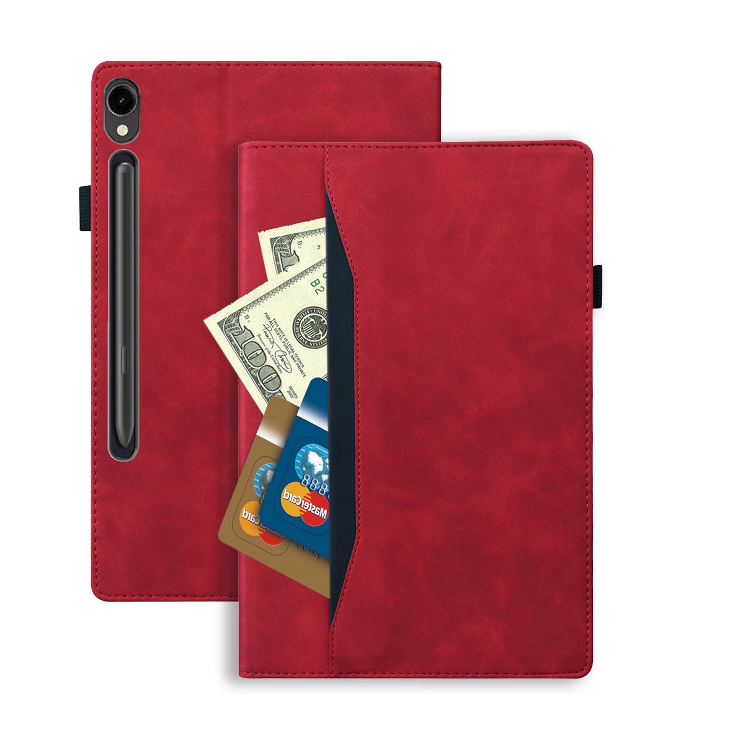 For Samsung Galaxy Tab S9 FE+ Tablet Case Wallet Stand Business Leather Cover - Red