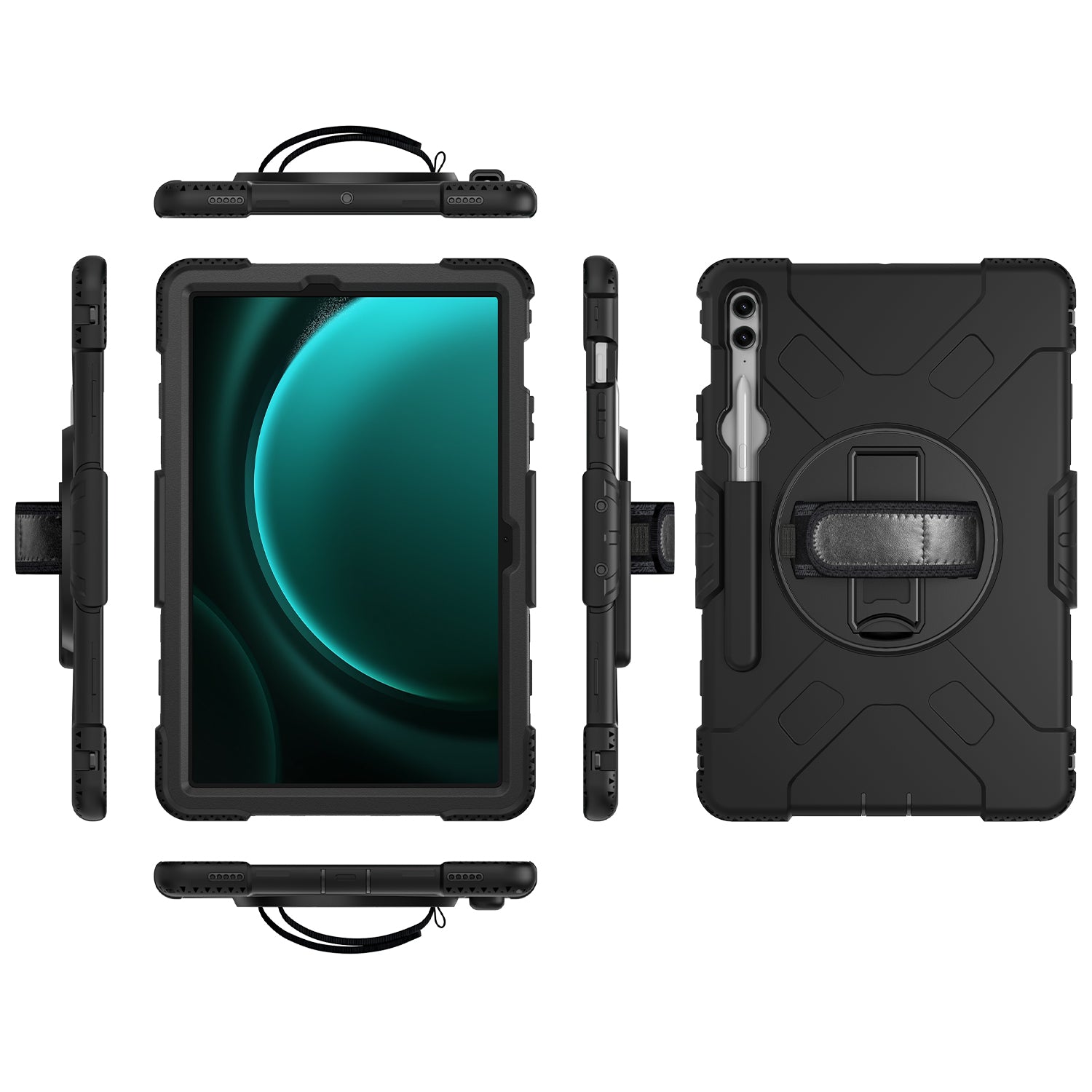 For Samsung Galaxy Tab S9+ / S9 FE+ Case PC + Silicone Tablet Kickstand Cover with Shoulder Strap