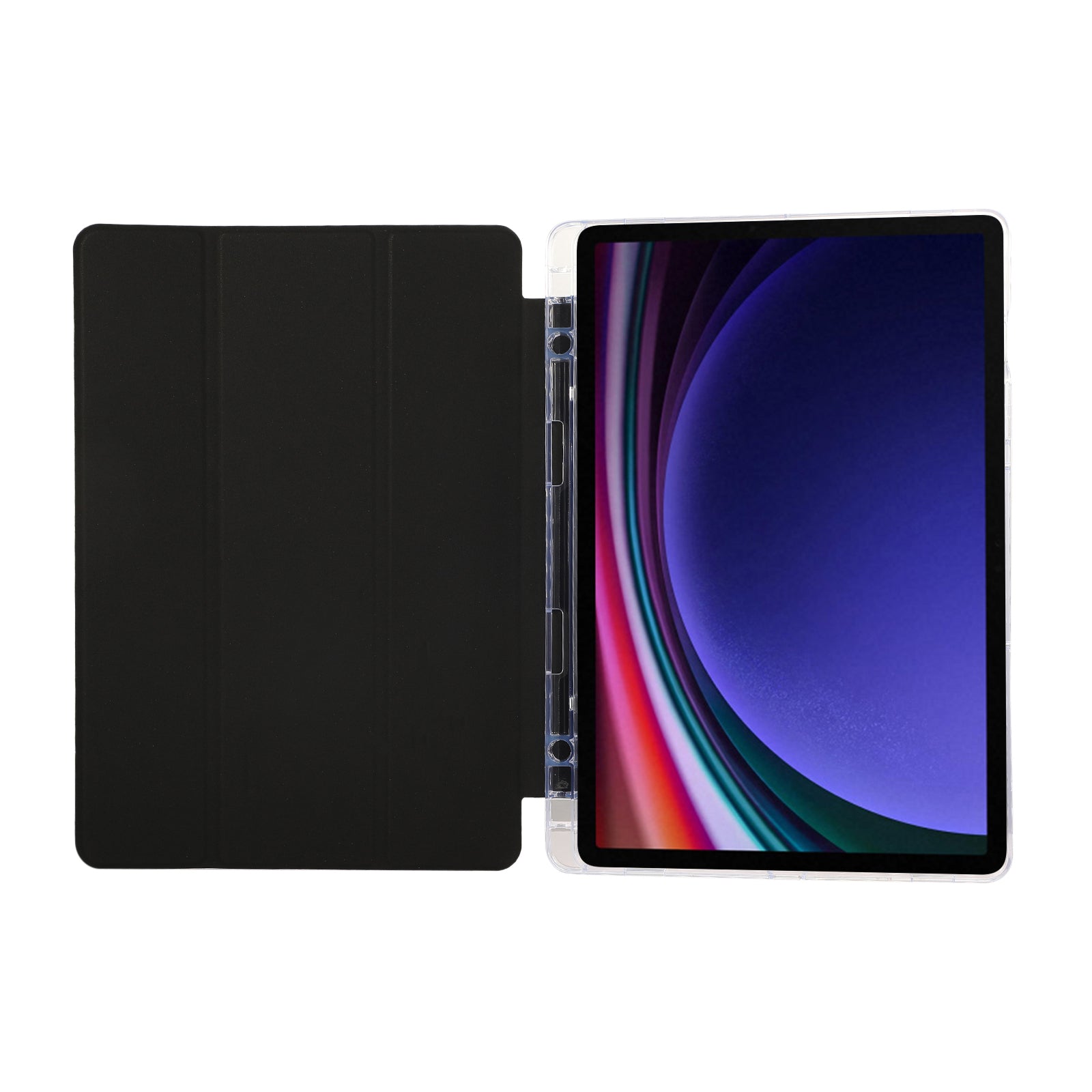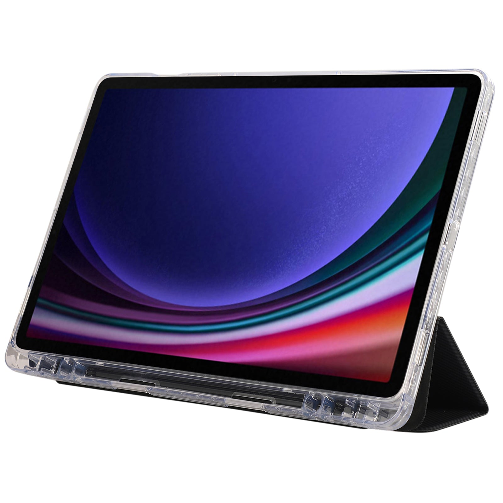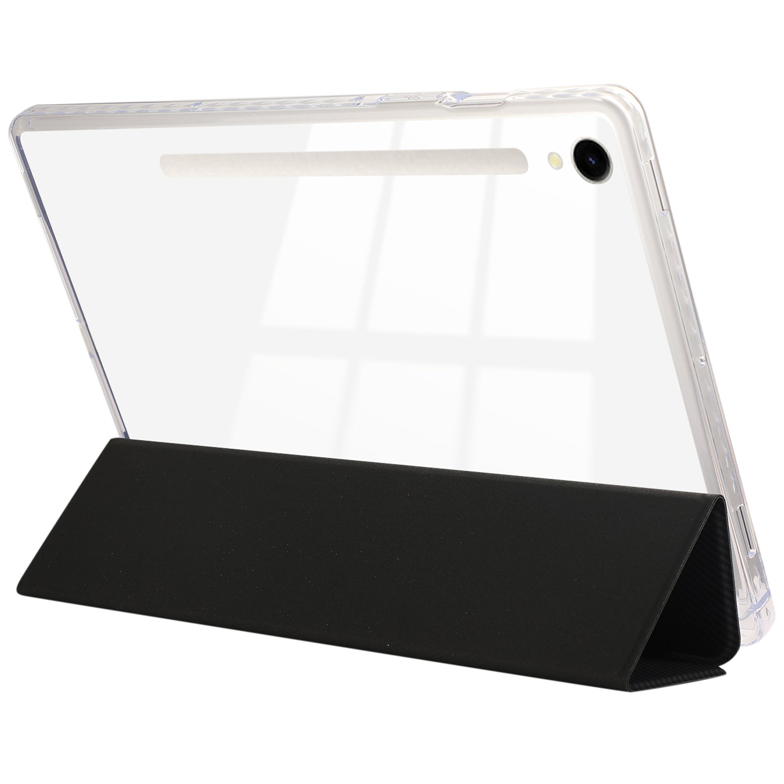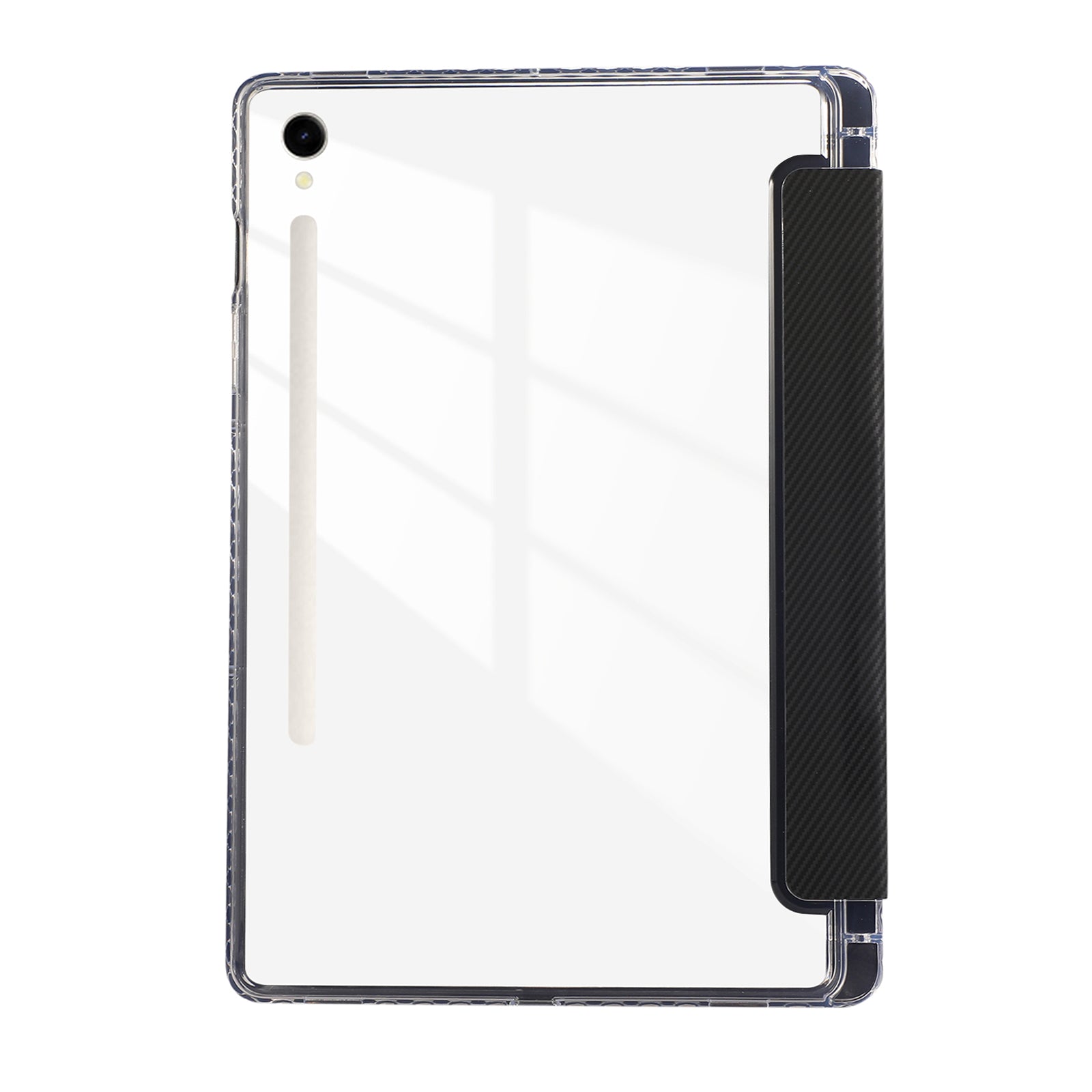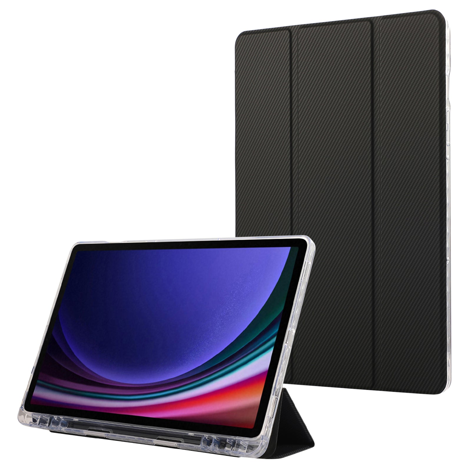 For Samsung Galaxy Tab S9 / S9 FE Case Tri-Fold Stand Smart Auto / Wake Leather Tablet Cover Carbon Fiber Texture - Black