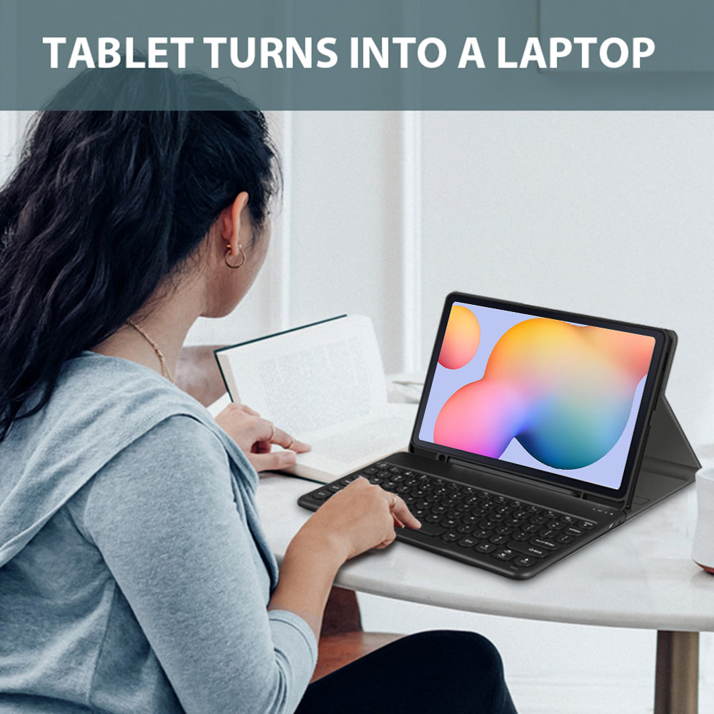 •[Multiple Viewing Angles] The removable keyboard is used as part of the stand for the tablet. Support 3 viewing angles and built in anti-slip grooves. Move the keyboard forward or backward along the cover of the case, you can adjust the angle of the tablet to your preference