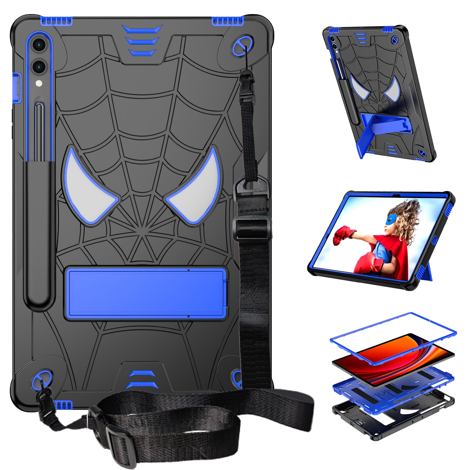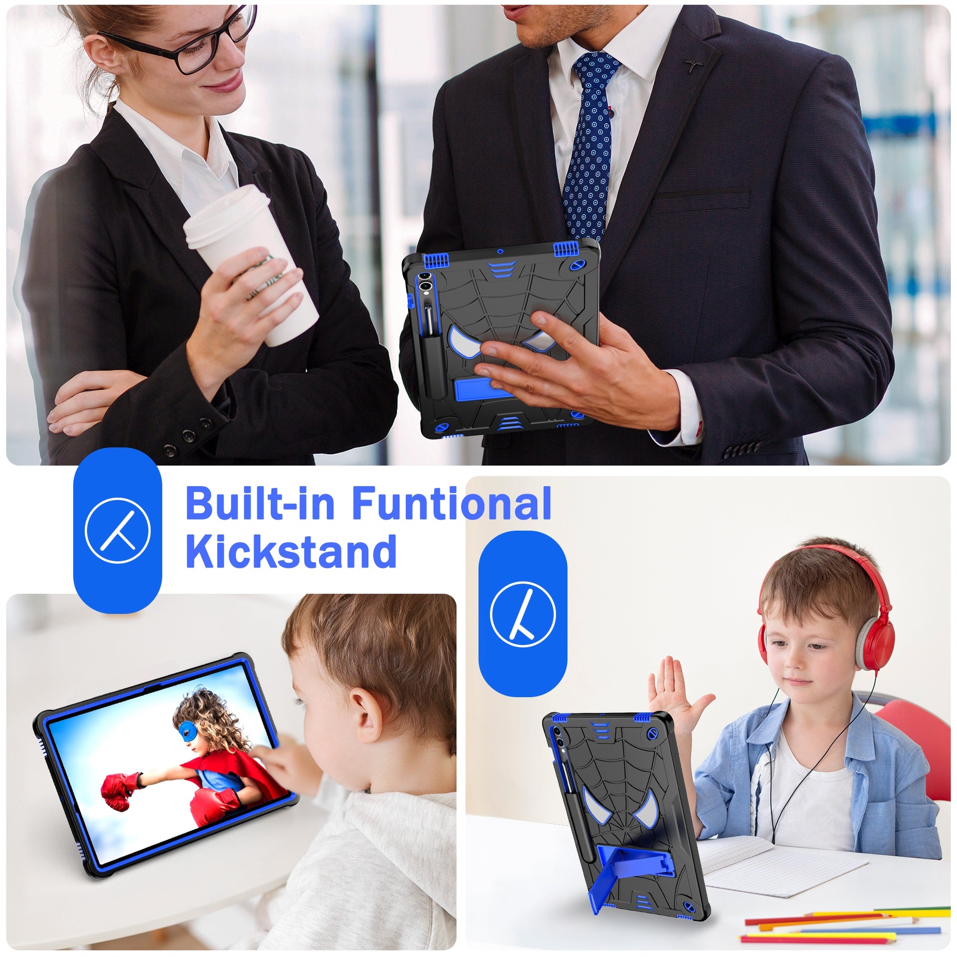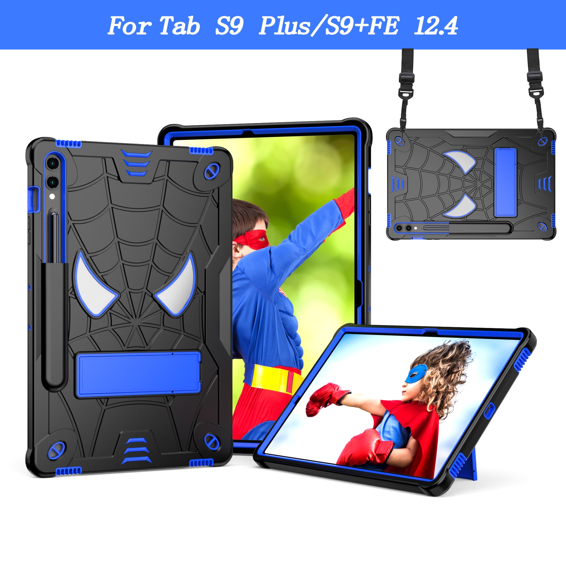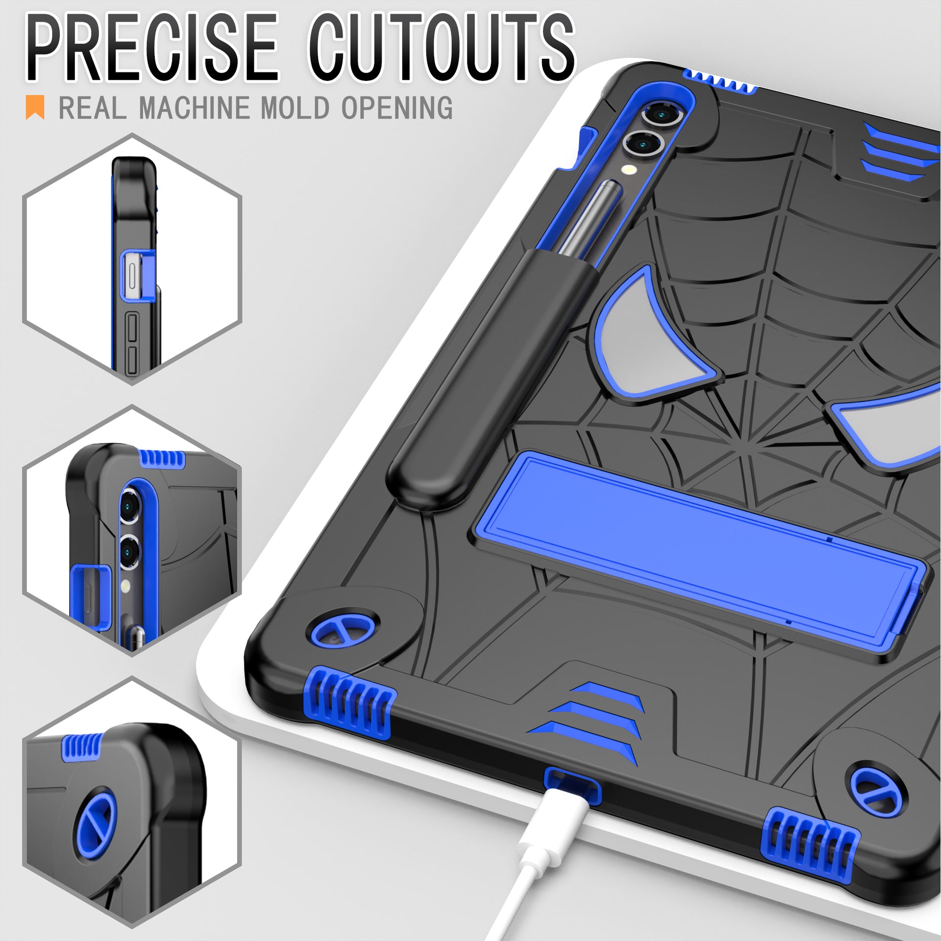 For Samsung Galaxy Tab S9+ / Tab S9 FE+ Kickstand Tablet Case Spider Style Shockproof Cover - Black+Blue