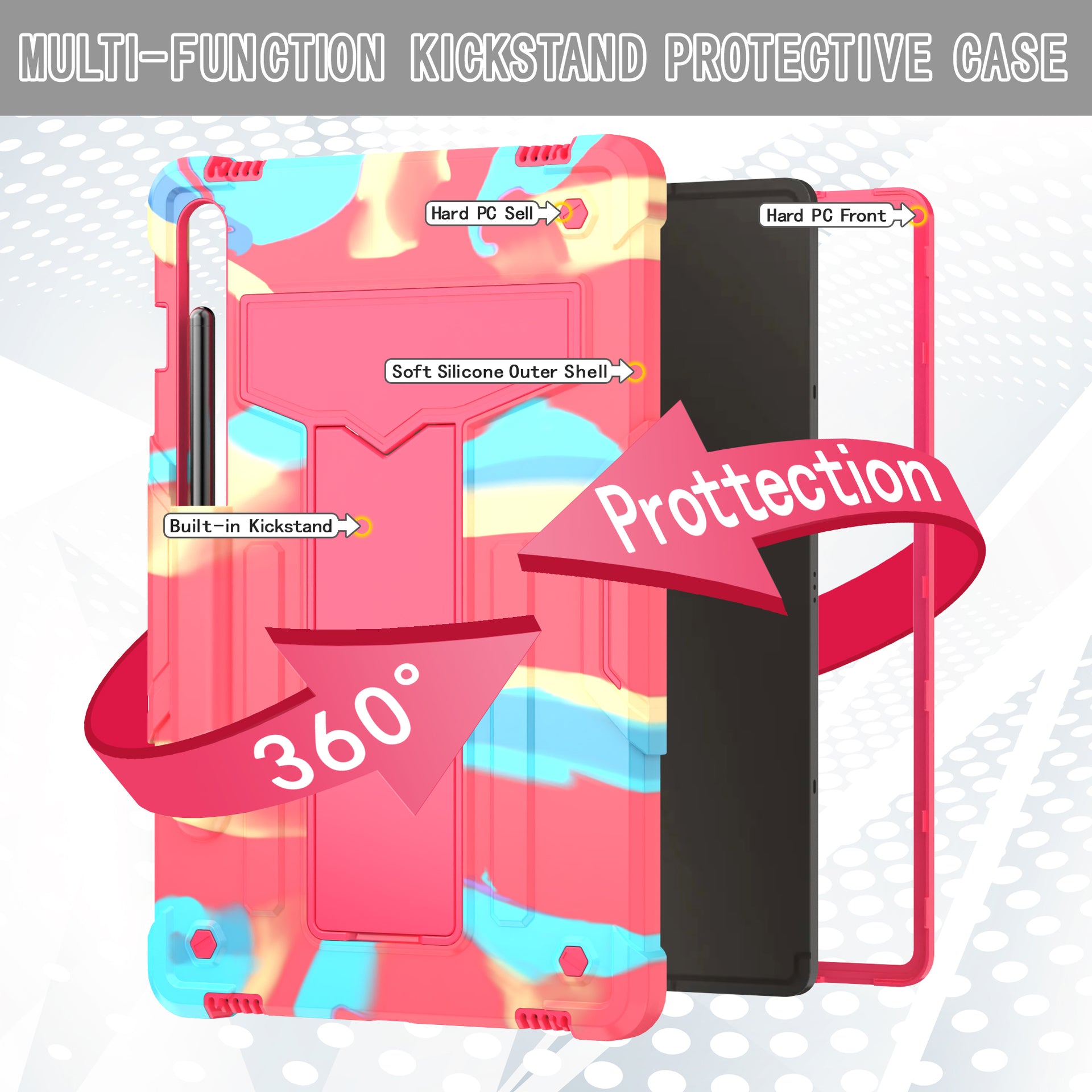 For Samsung Galaxy Tab S9 / Tab S9 FE Protective Case T-Shaped Kickstand PC+Silicone Tablet Cover - Camo Rose